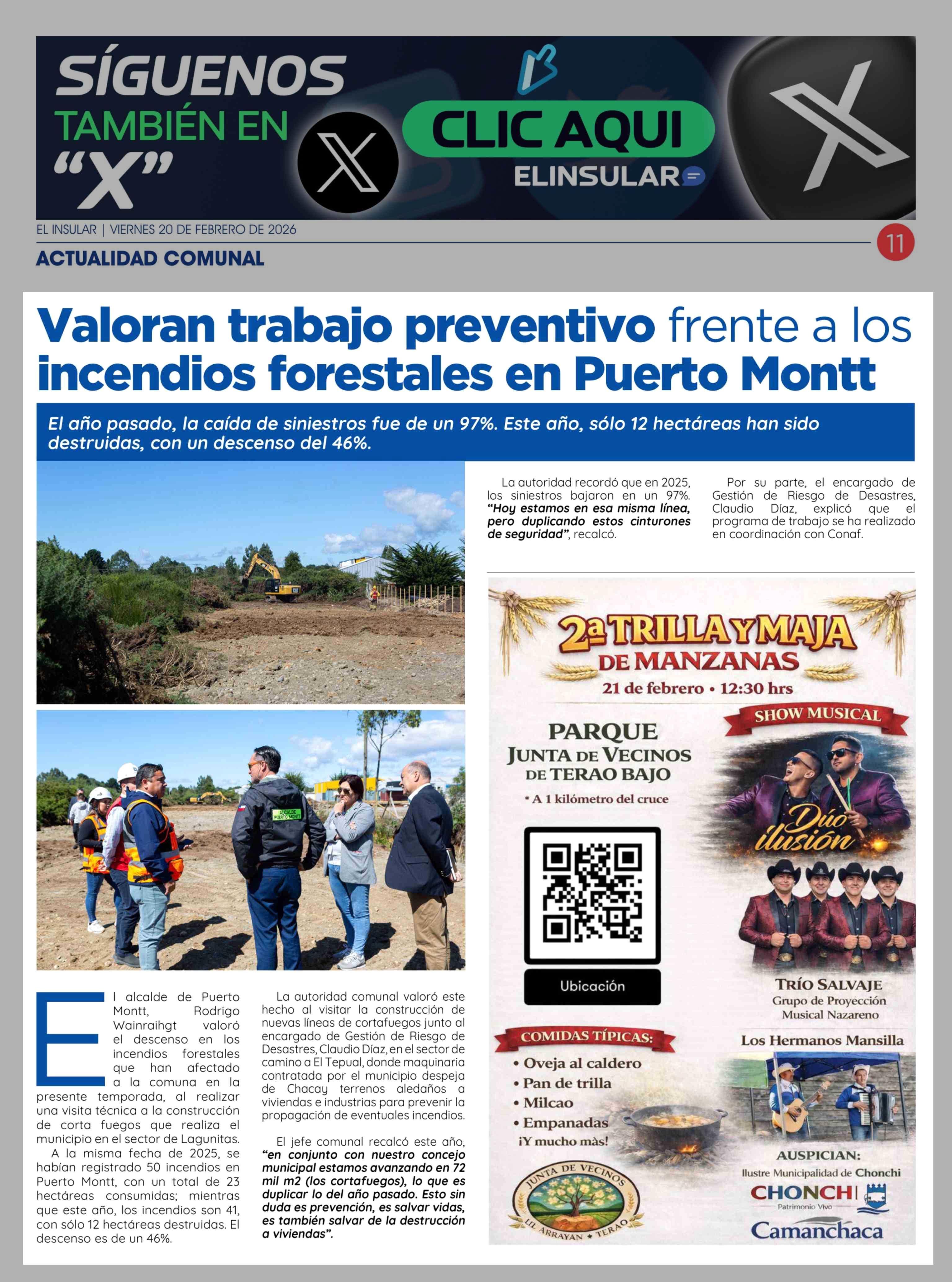 | Fecha: | 20-02-2026 | Sector: | Noticia general | Región: | Región de Los Lagos |