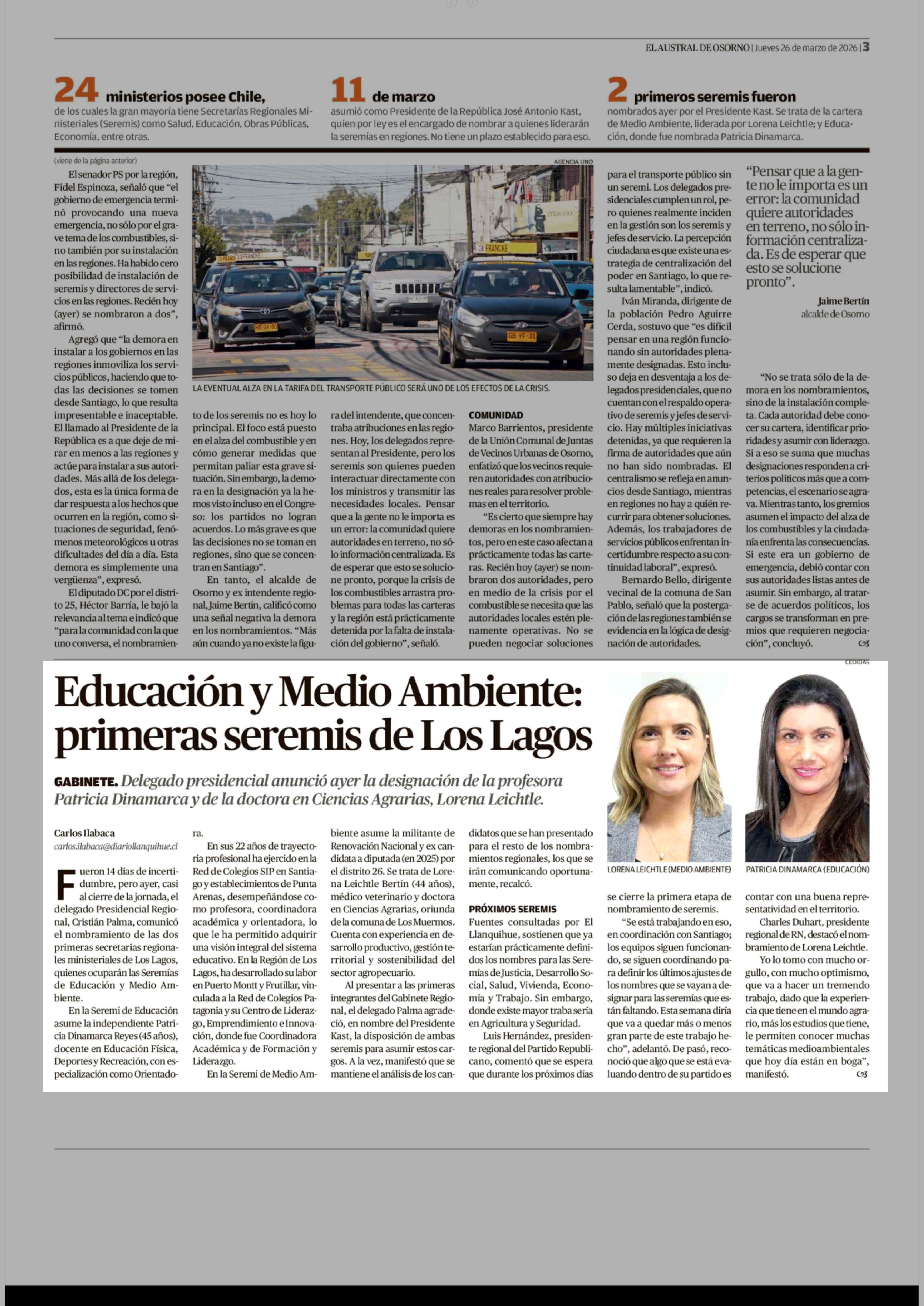 Título: Educación y Medio Ambiente: primeras seremis de Los Lagos