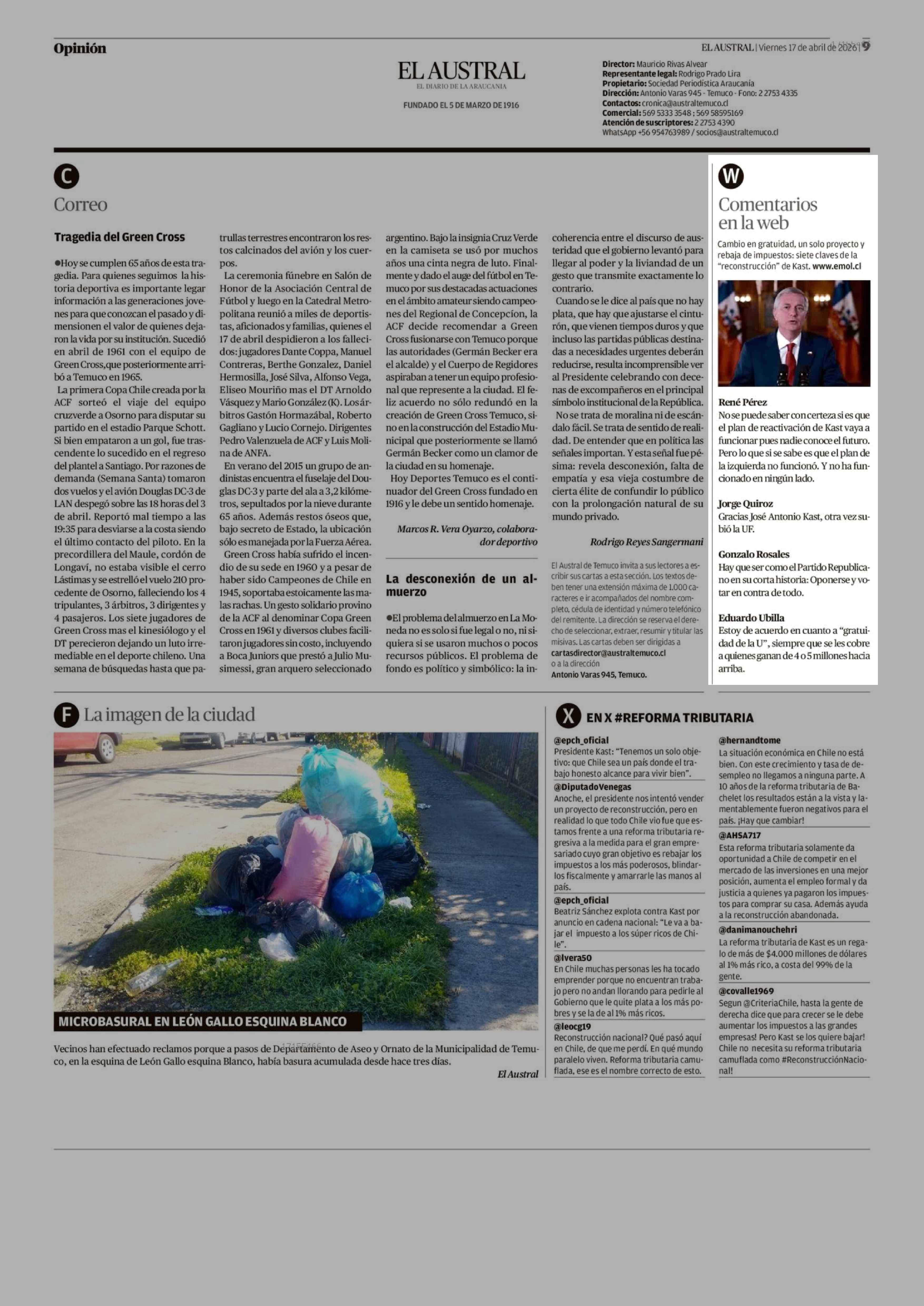 W Comentarios en la web 17-04-2026 El Austral de la Araucanía |