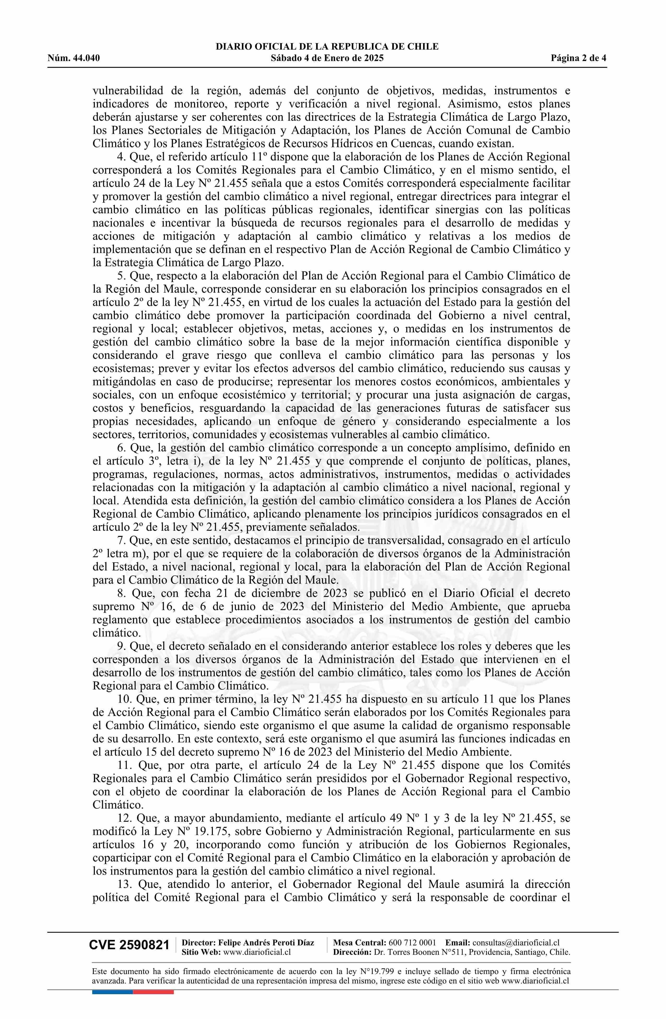 Resolución exenta número 10.753, de 2024.- Aprueba el anteproyecto del Plan de Acción Regional de Cambio Climático de la Región del Maule 04-01-2025 DIARIO OFICIAL CHILE - BOLETÍN OFICIAL DE MINERÍA |