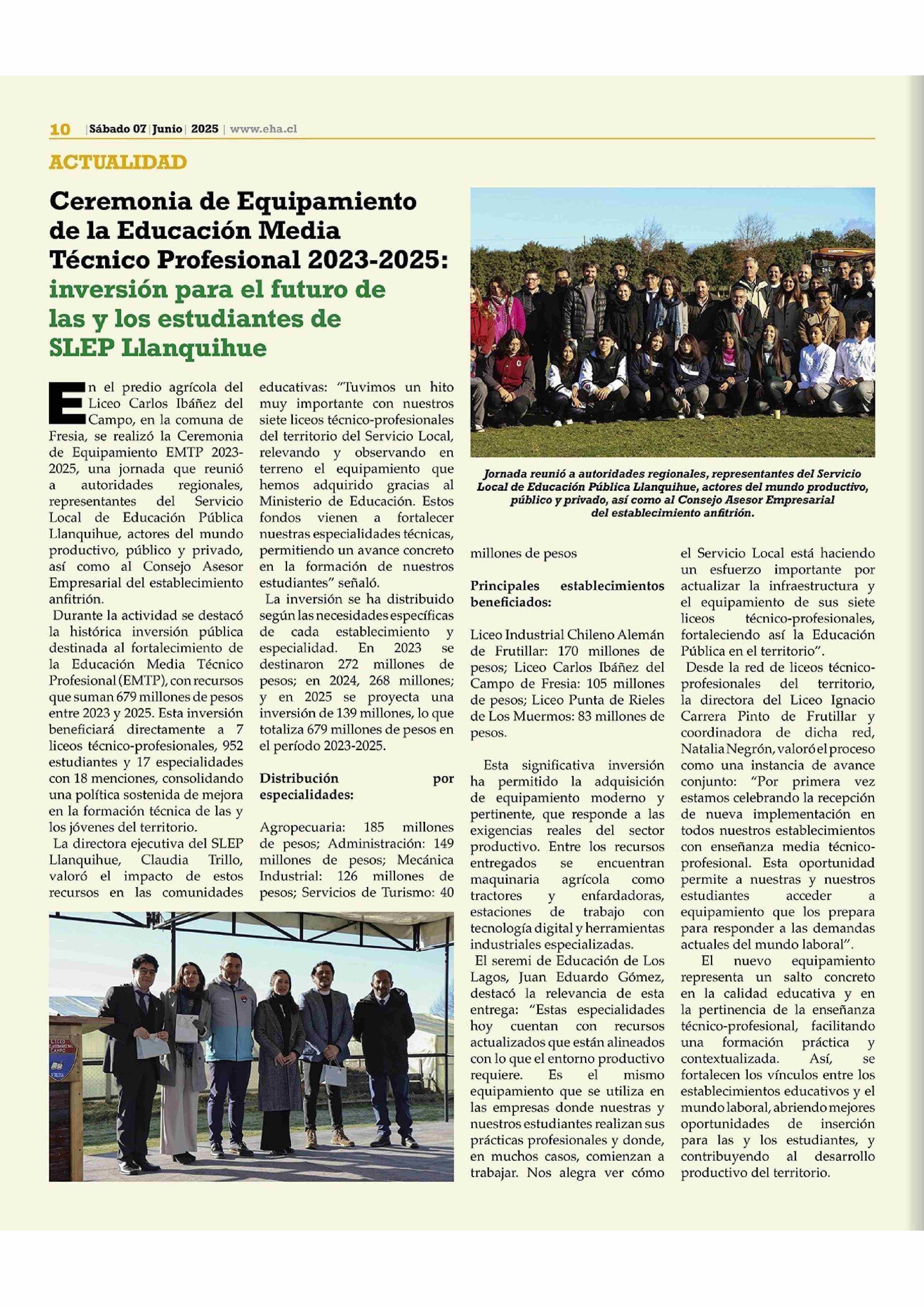 Título: Ceremonia de Equipamiento Técnico Profesional 2023-2025: las y los estudiantes de SLEP Llanquihue