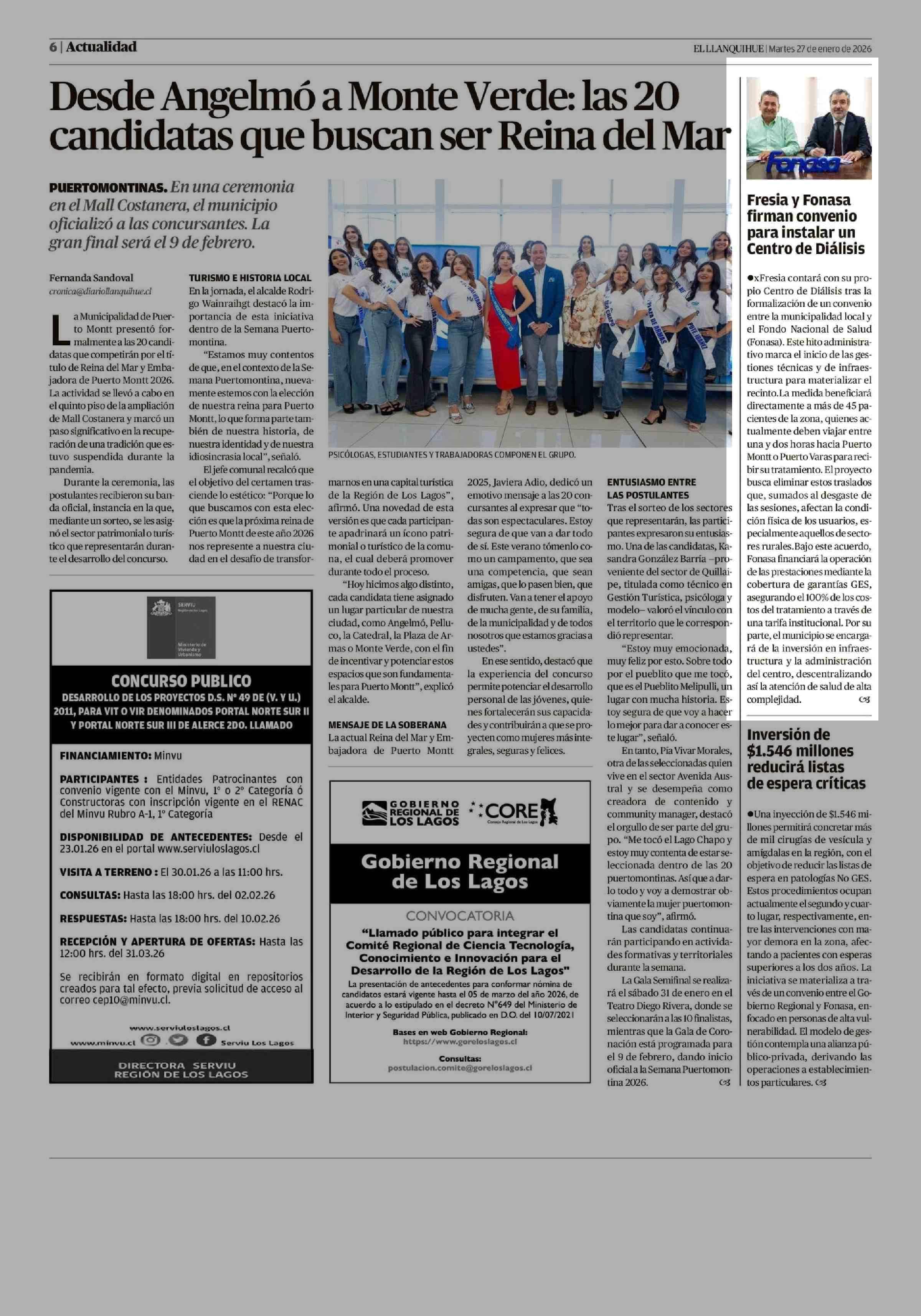 Fresia y Fonasa firman convenio para instalar un Centro de Diálisis 27-01-2026 El Llanquihue |