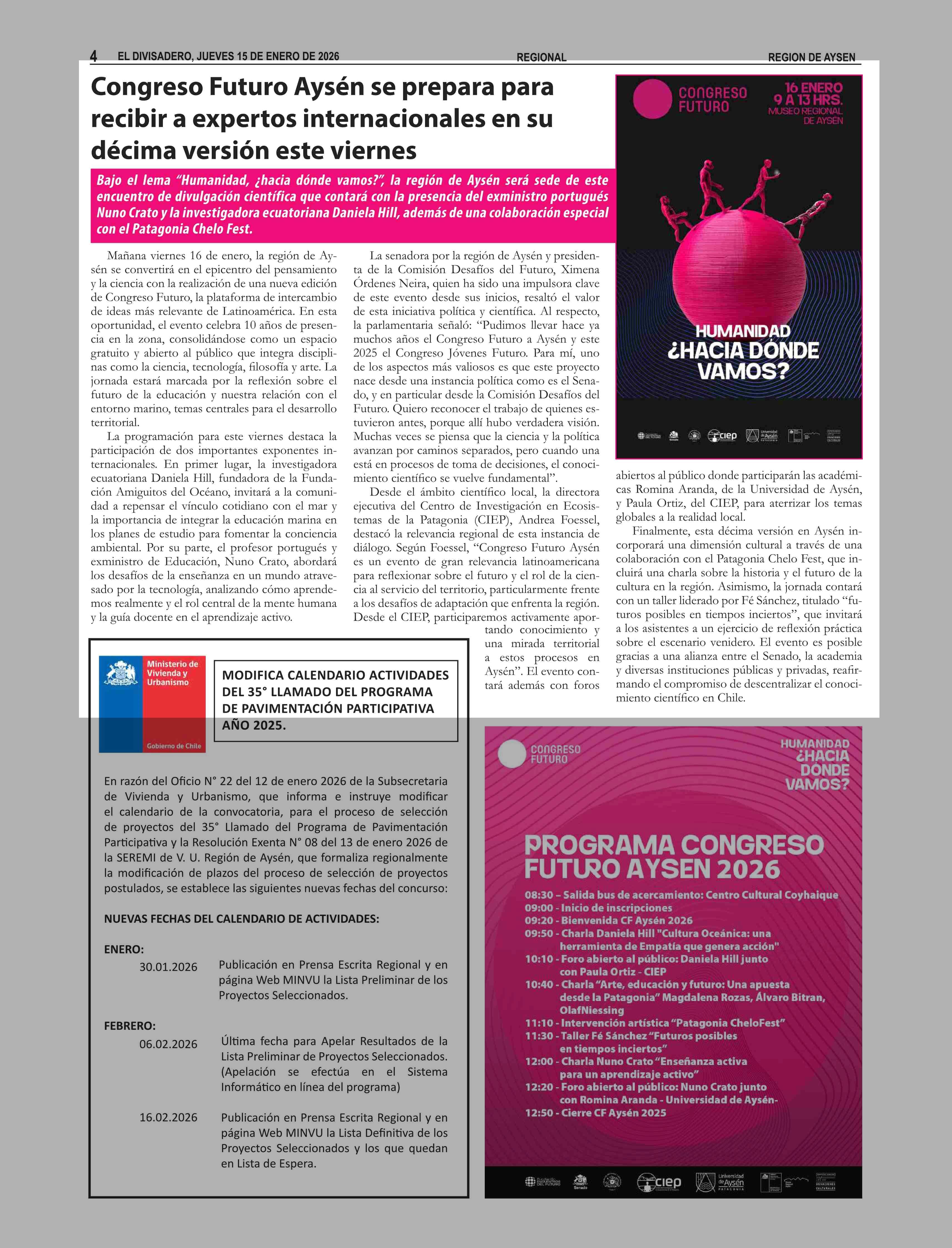 Congreso Futuro Aysén se prepara para recibir a expertos internacionales en su décima versión este viernes 15-01-2026 El Divisadero |