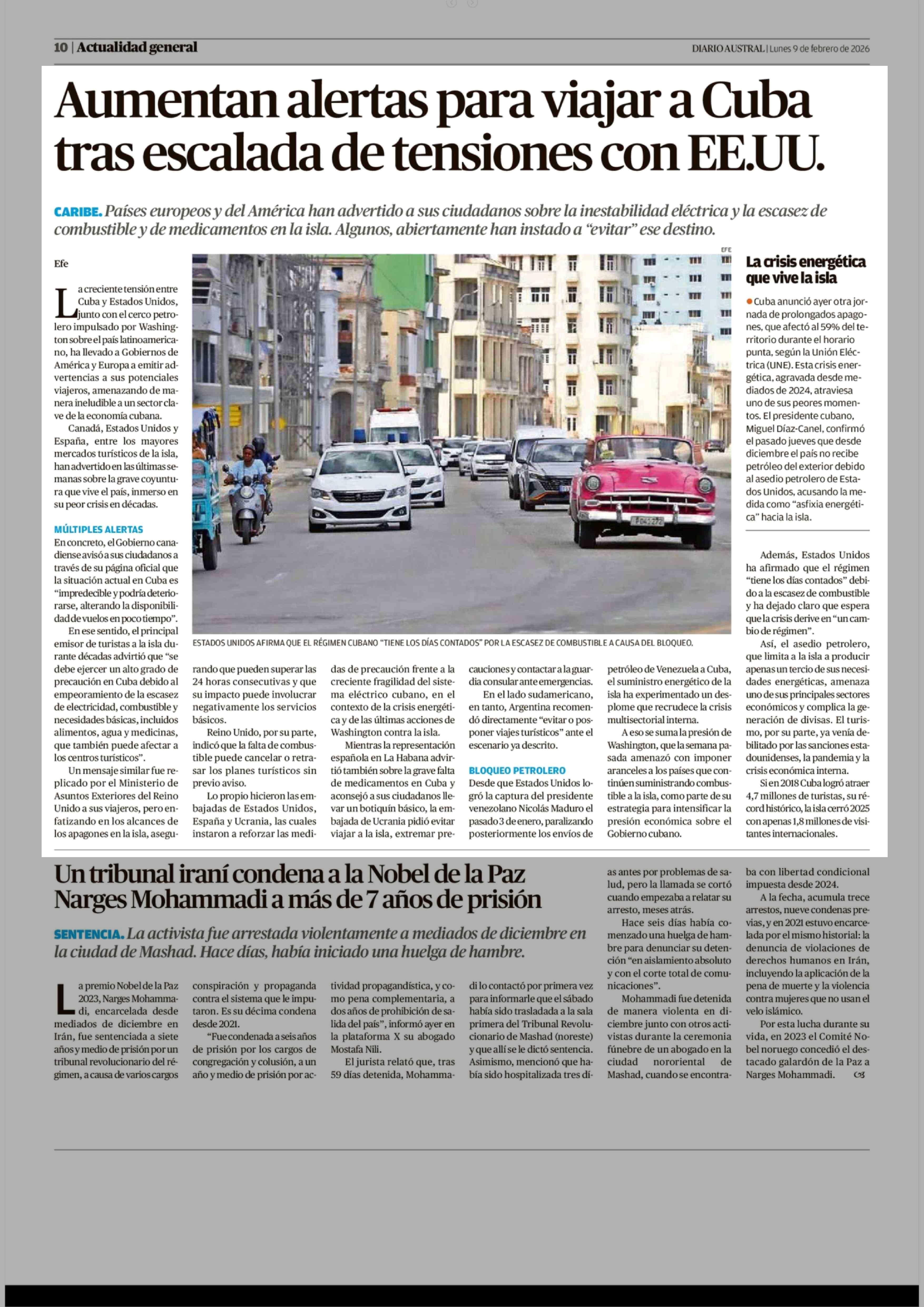 Título: Aumentan alertas para viajar a Cuba tras escalada de tensiones con EE.UU.