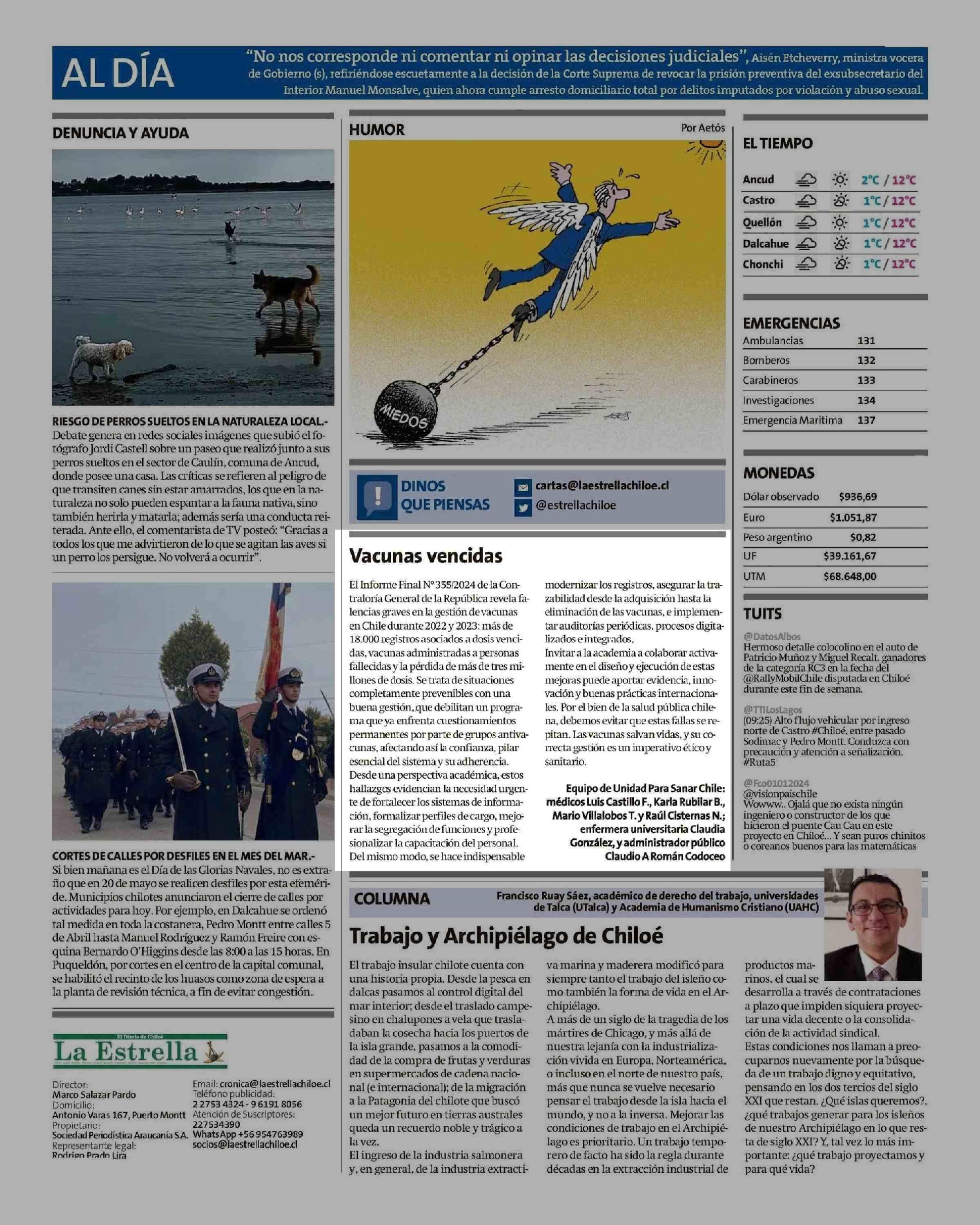 Cartas: Vacunas vencidas 20-05-2025 La Estrella de Chiloé |