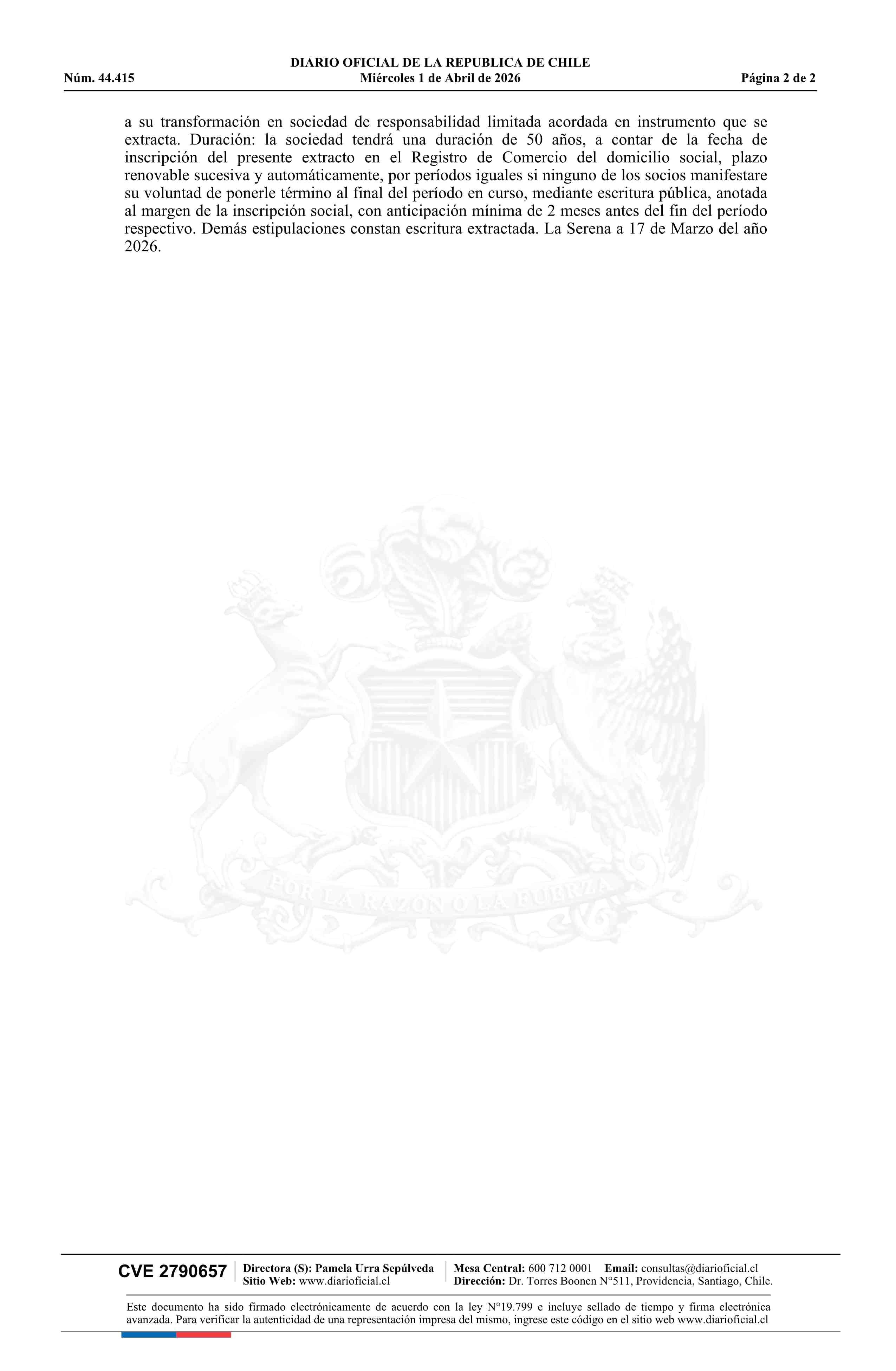Inversiones Arancibia SpA 76.991.584-2* 01-04-2026 Diario Oficial Edición Electrónica |