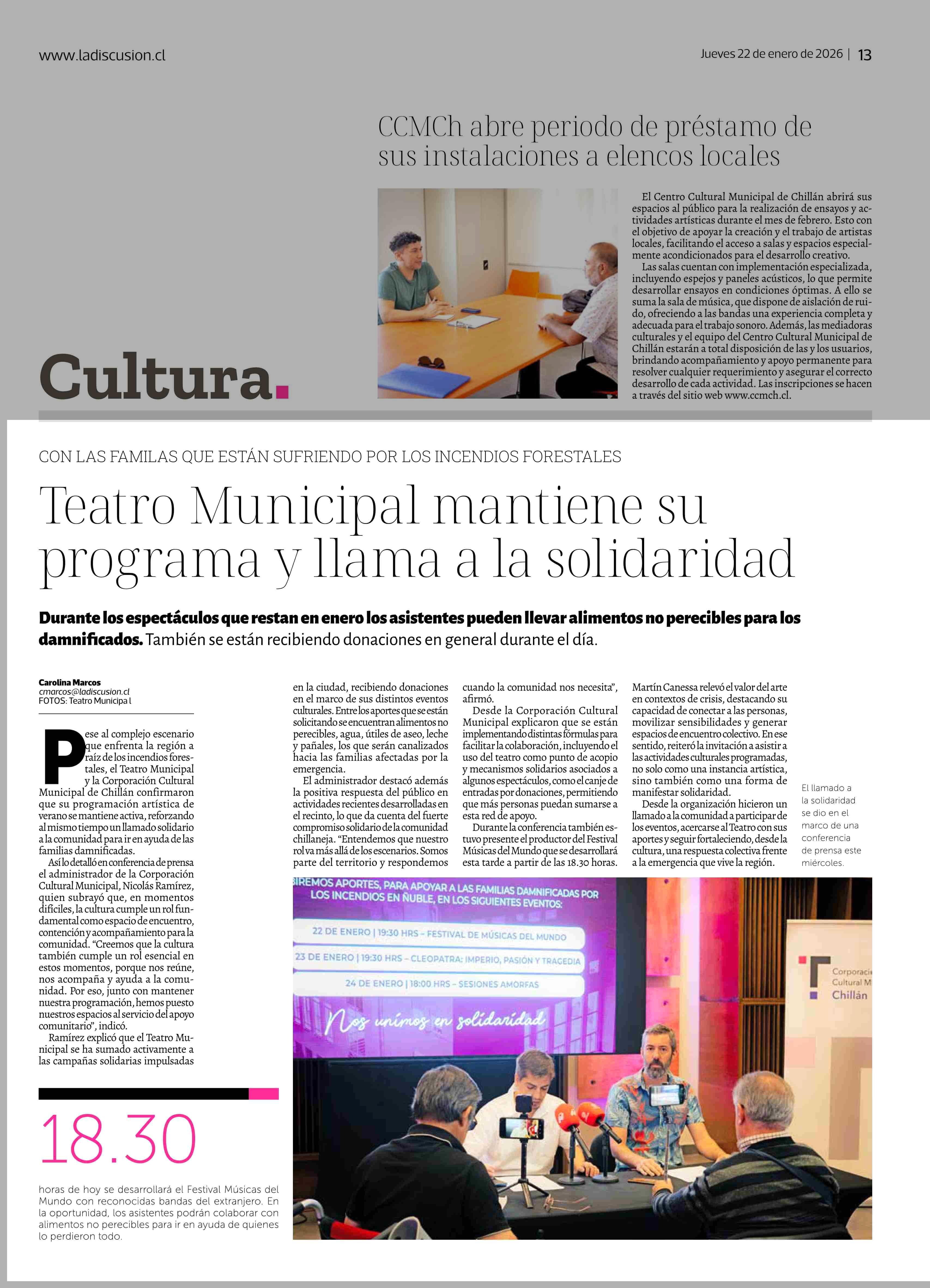 Título: Teatro Municipal mantiene su programa y llama a la solidaridad