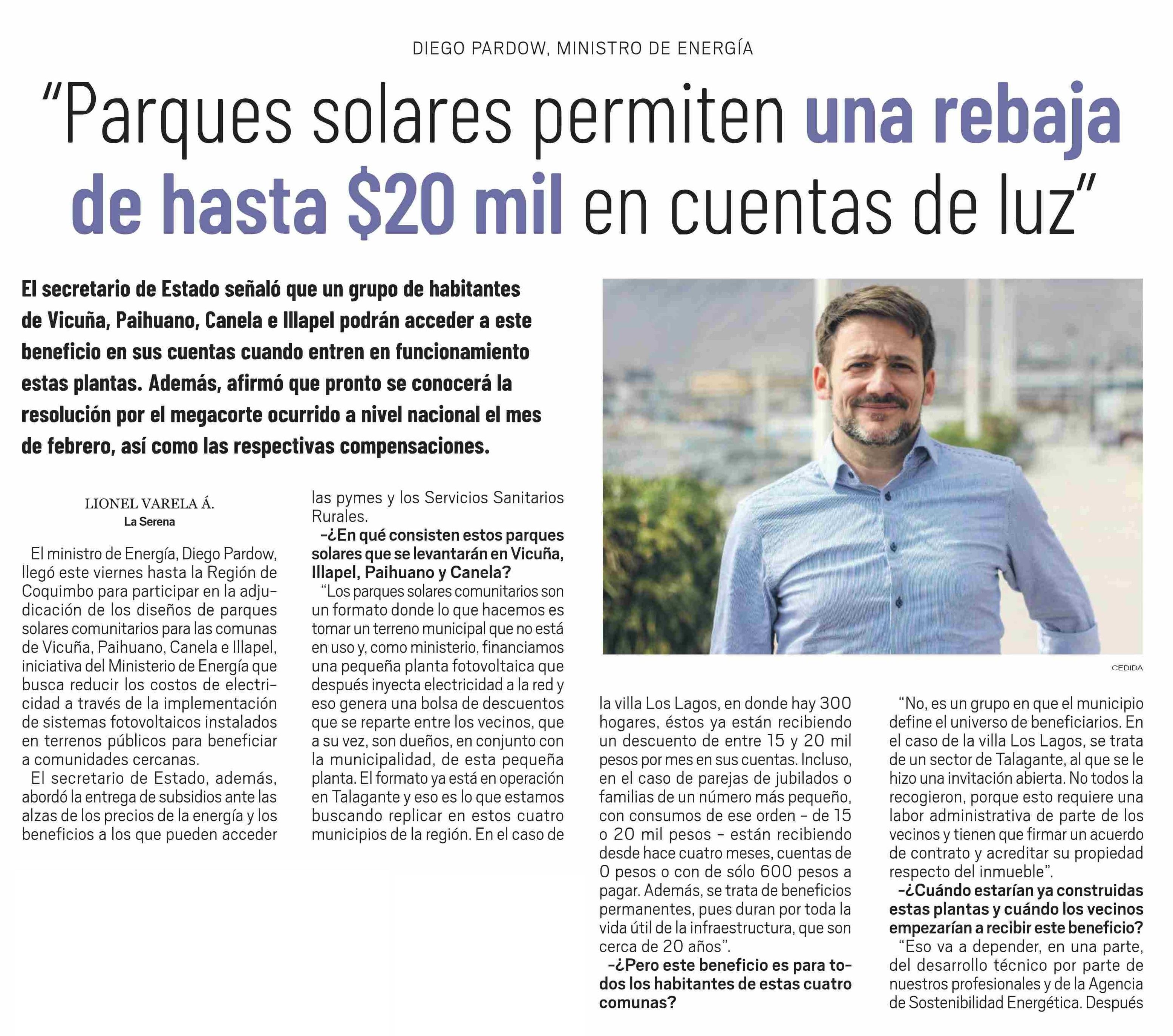 | Título: | “Parques solares permiten una rebaja de hasta $20 mil en cuentas de luz” |