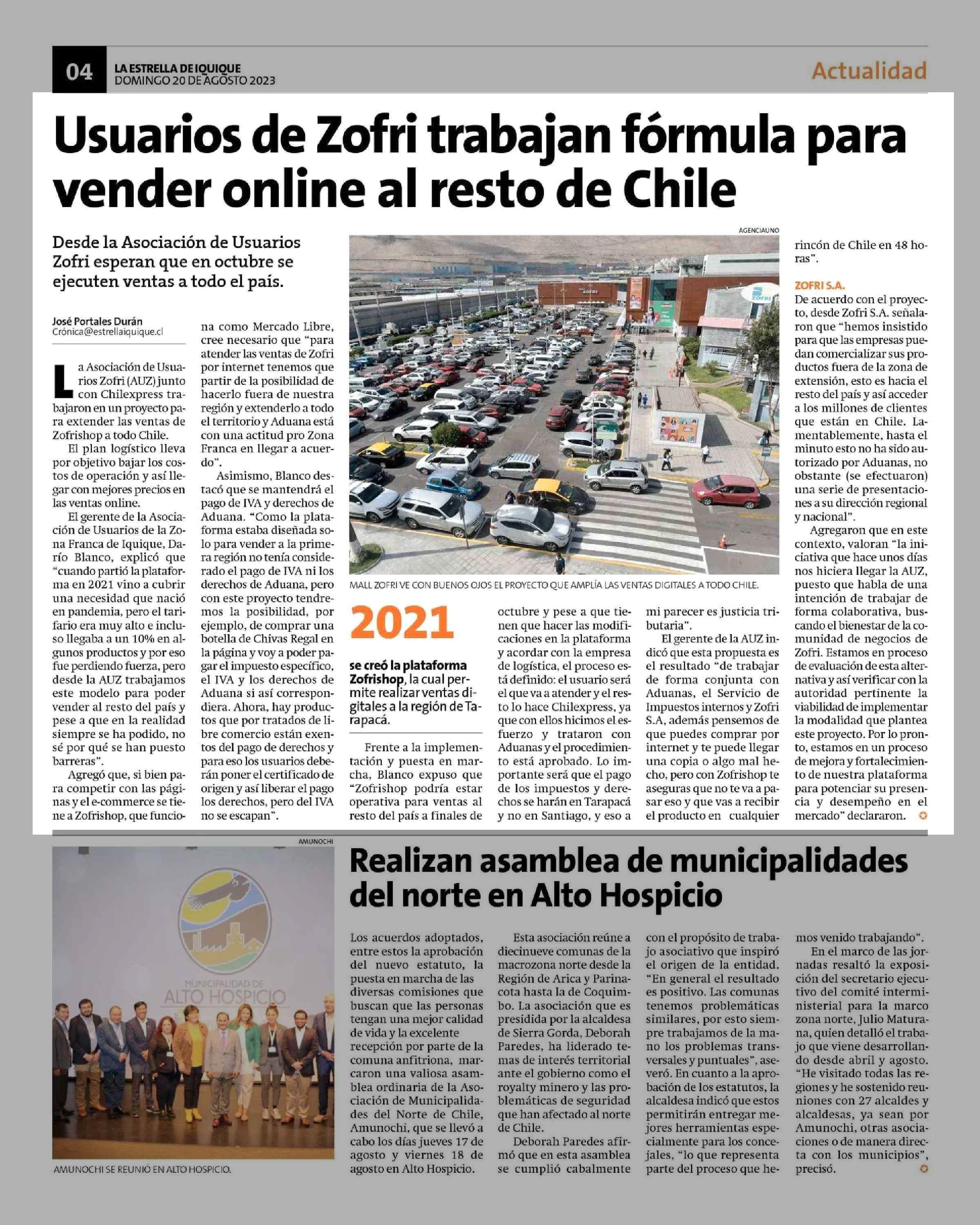 Usuarios de Zofri trabajan fórmula para vender online al resto de Chile 20-08-2023 La Estrella de Iquique |