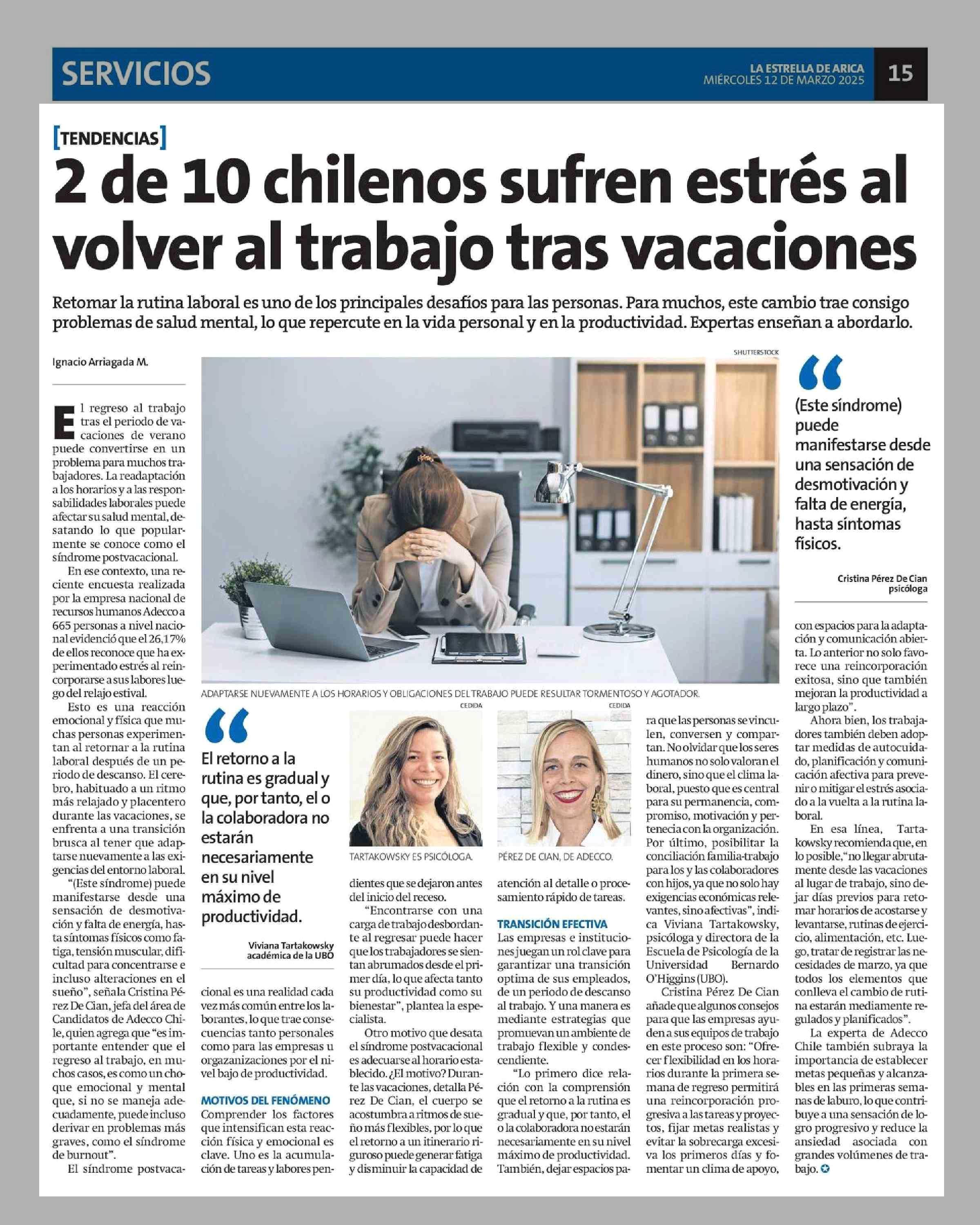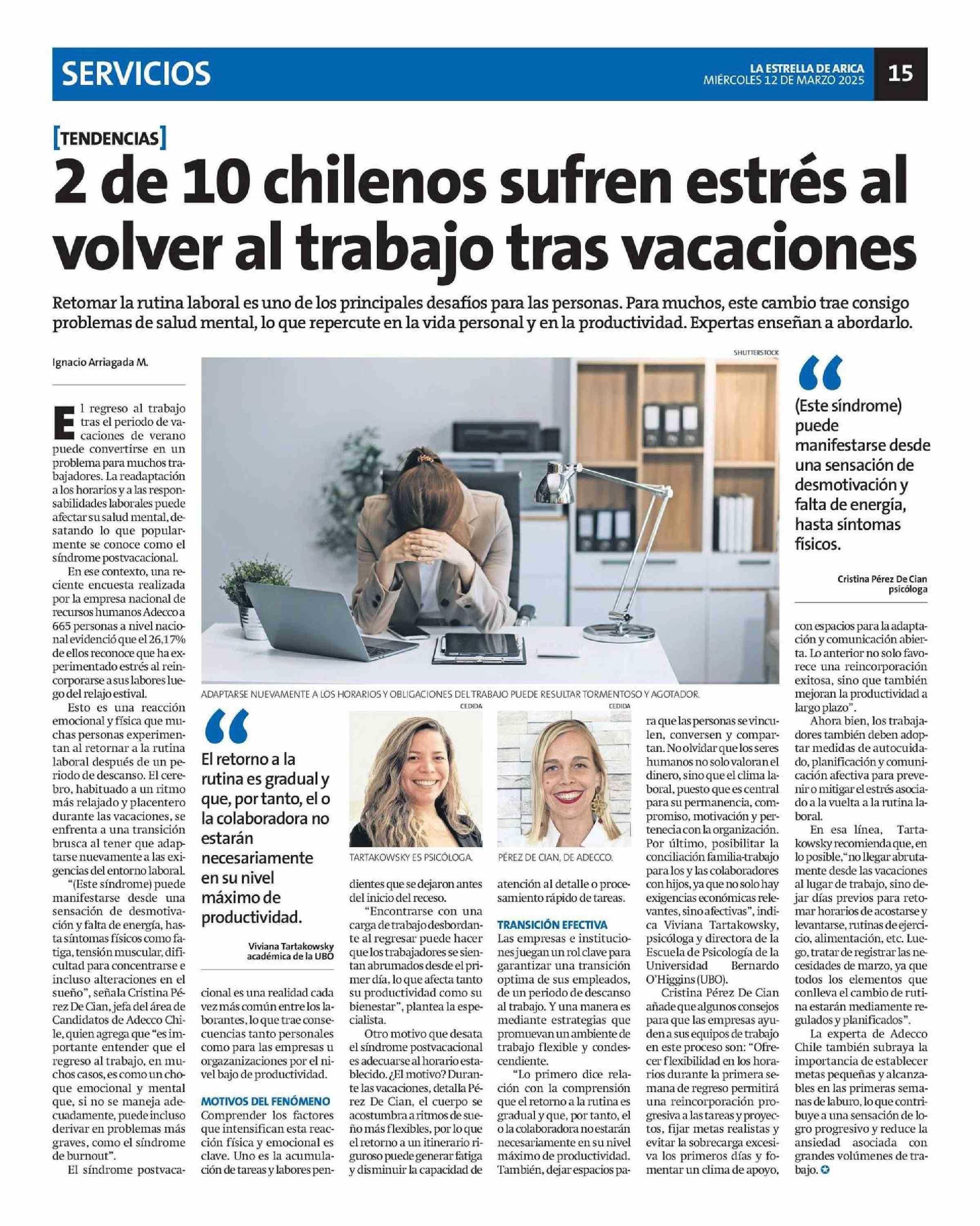 2 De 10 chilenos sufren estrés al volver al trabajo tras vacaciones 12-03-2025 La Estrella de Arica |