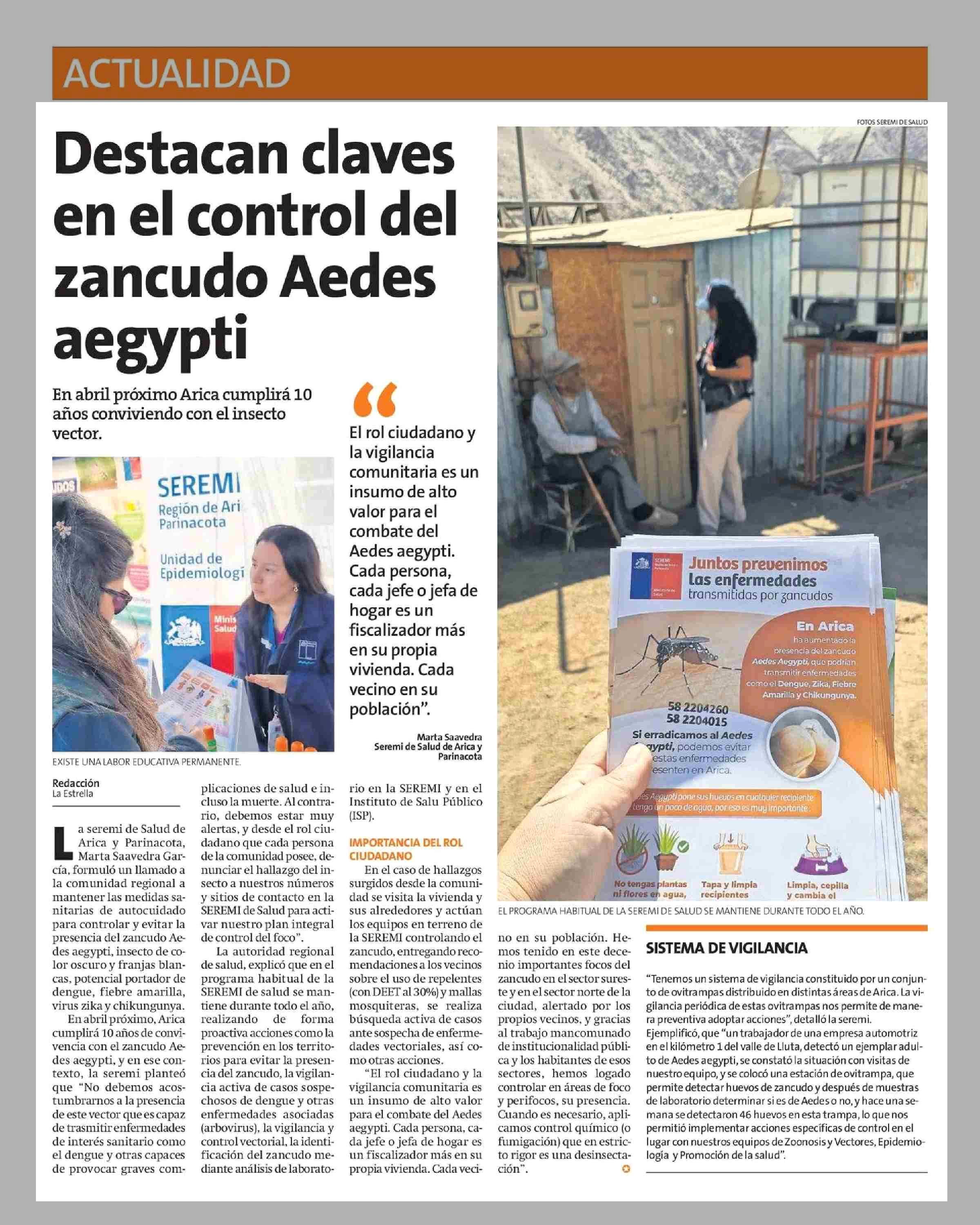 Destacan claves en el control del zancudo Aedes aegypti 21-01-2026 La Estrella de Arica |