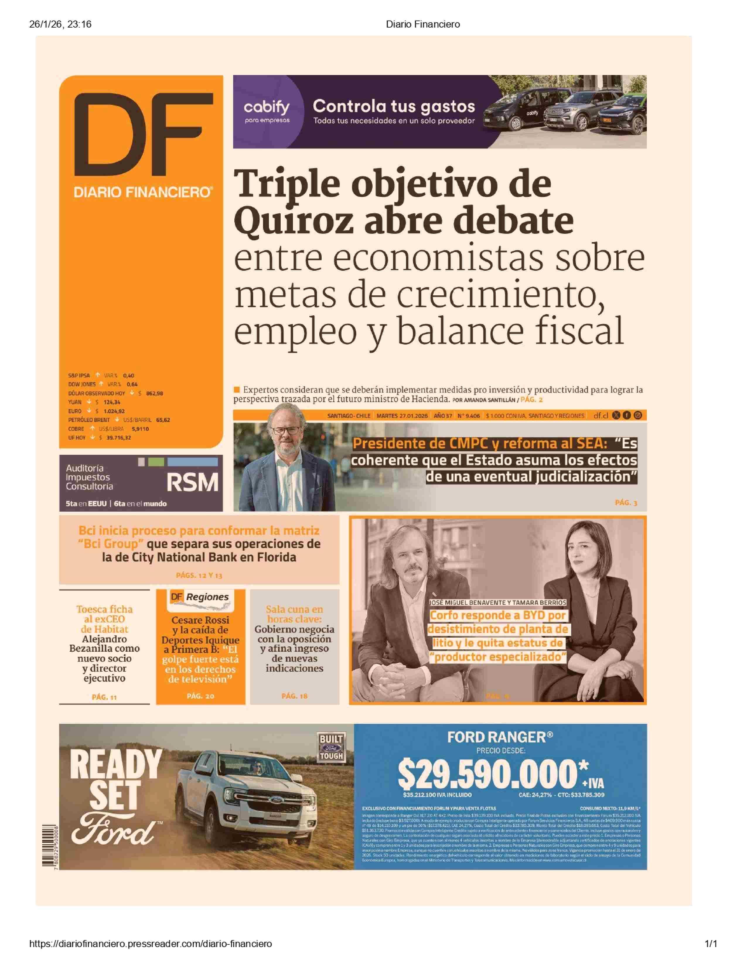 Fuente: Diario Financiero (Diario Financiero) Página(s): 1