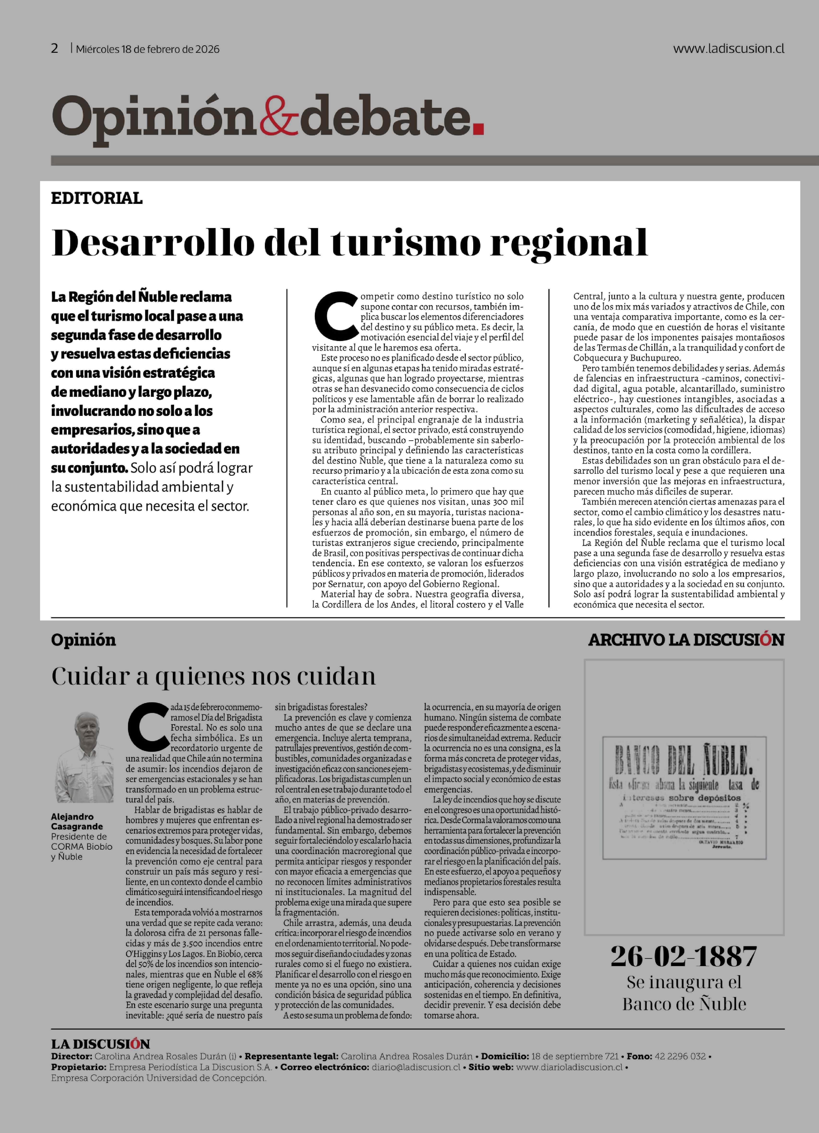 Fecha: 18-02-2026 Sector: Editorial Región: Región del Ñuble