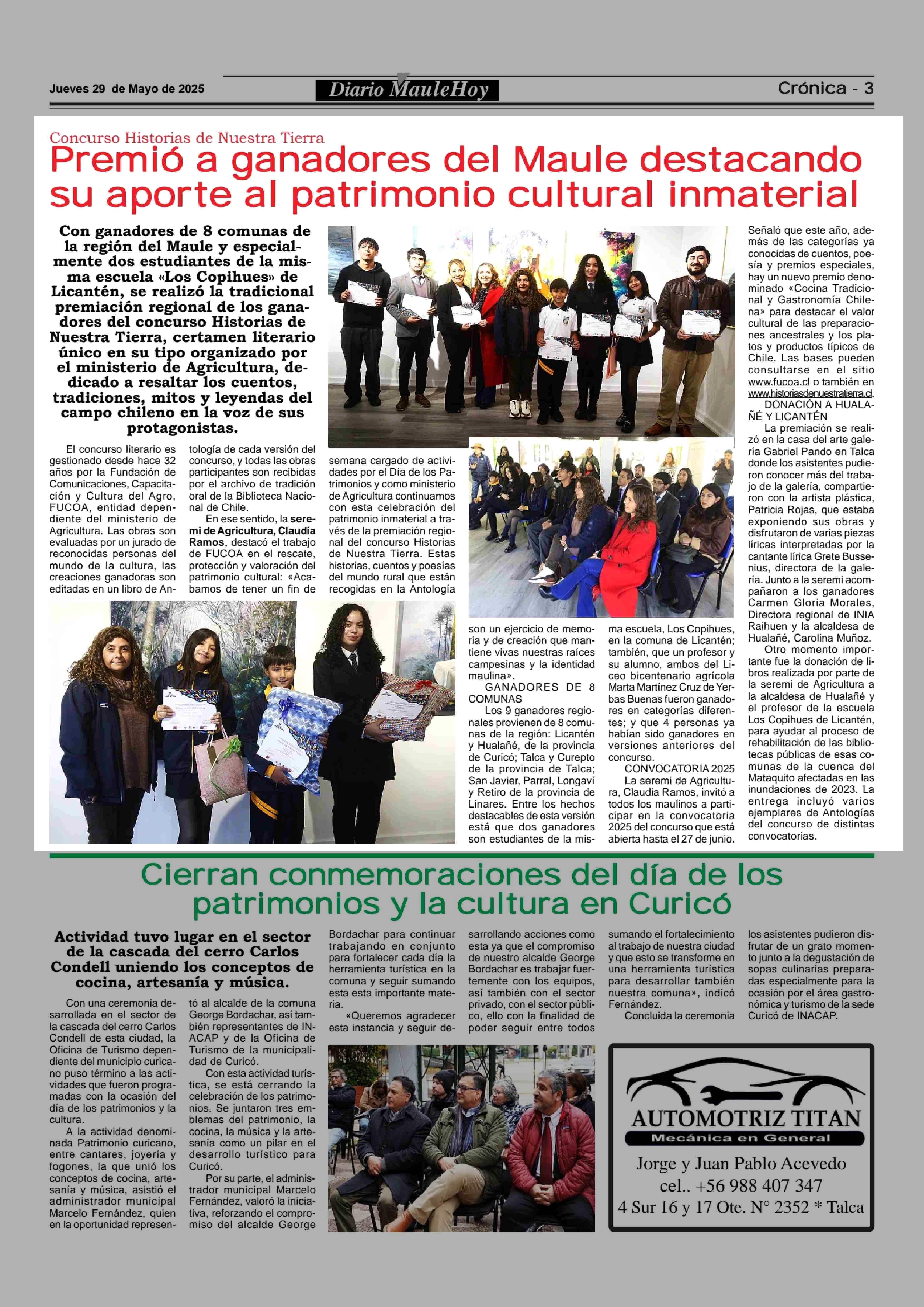 | Fecha: | 29-05-2025 | Sector: | Noticia general | Región: | Región del Maule |