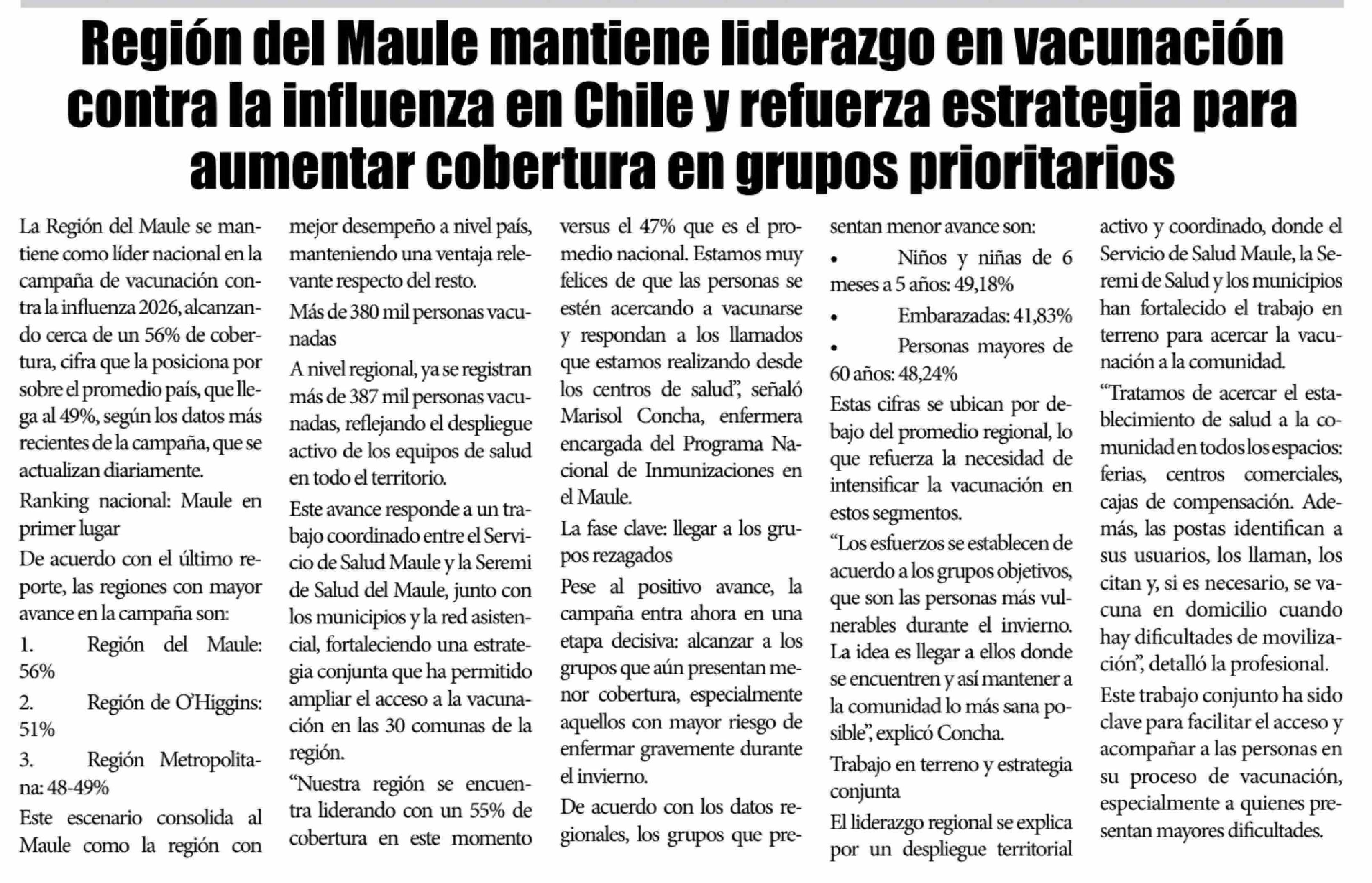 Título: Región del Maule mantiene liderazgo en vacunación contra la influenza en Chile y refuerza estrategia para aumentar cobertura en grupos prioritarios