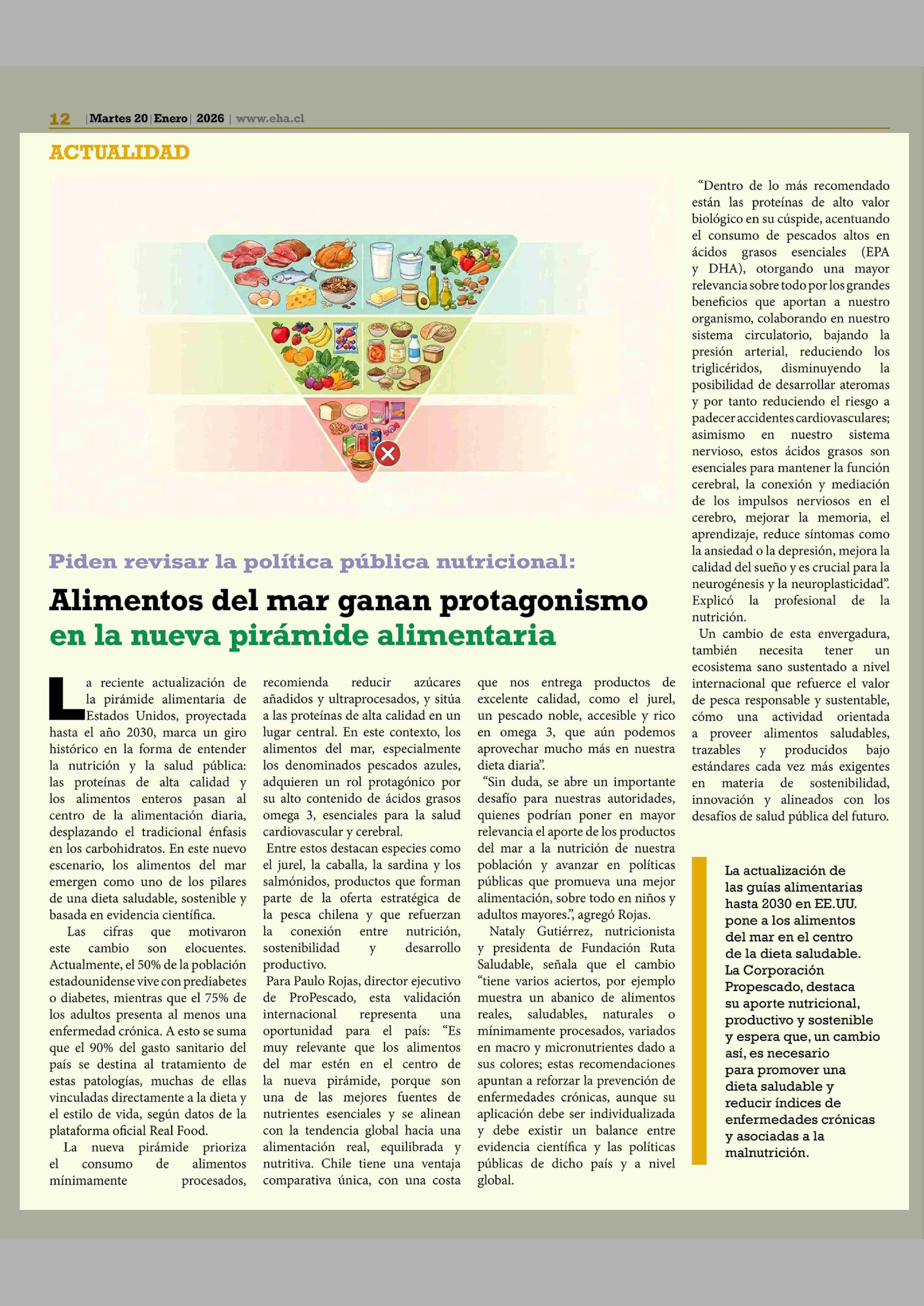 Alimentos del mar ganan protagonismo en la nueva pirámide alimentaria 20-01-2026 El Heraldo Austral |