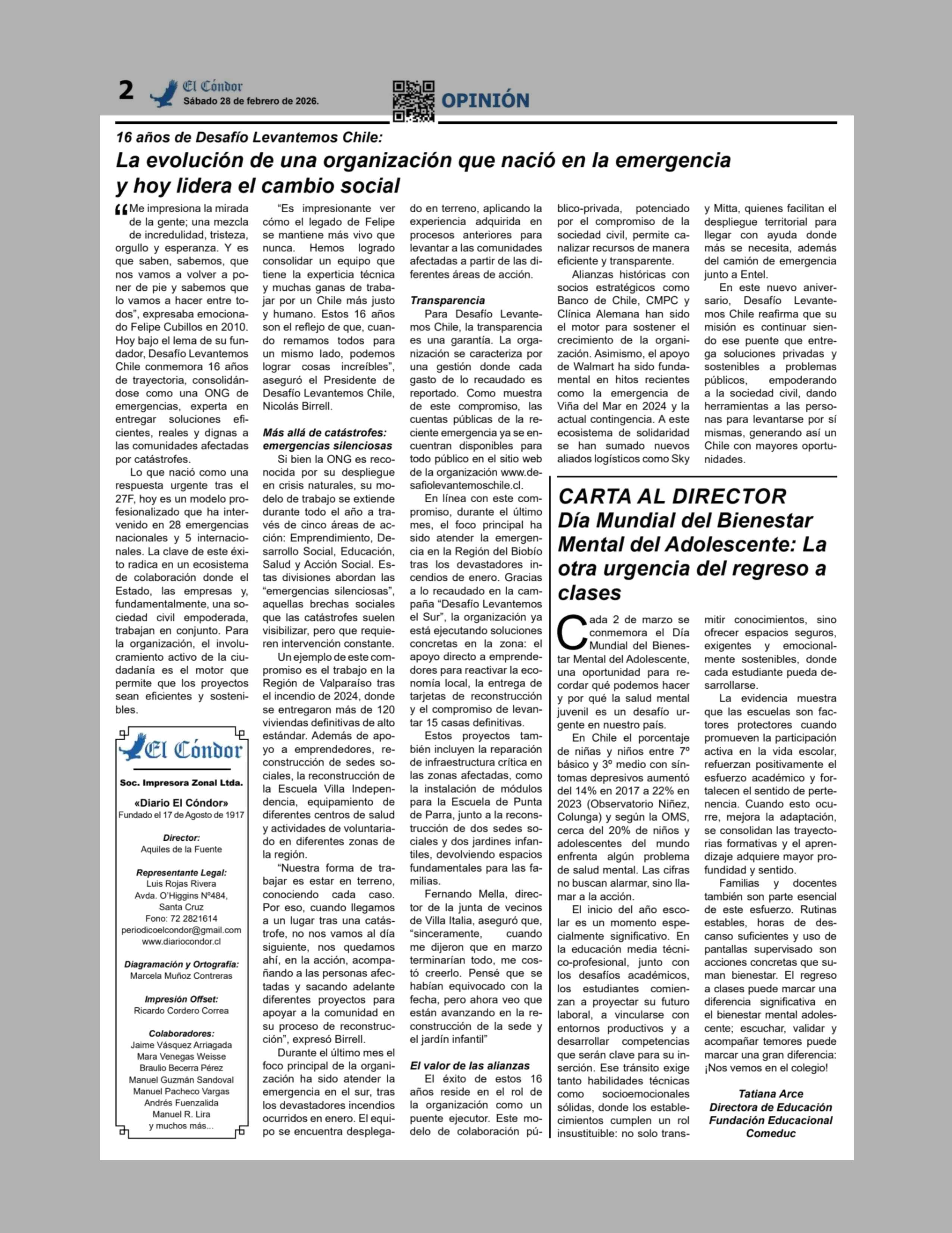 La evolución de una organización que nació en la emergencia y hoy lidera el cambio social 28-02-2026 Diario El Cóndor |