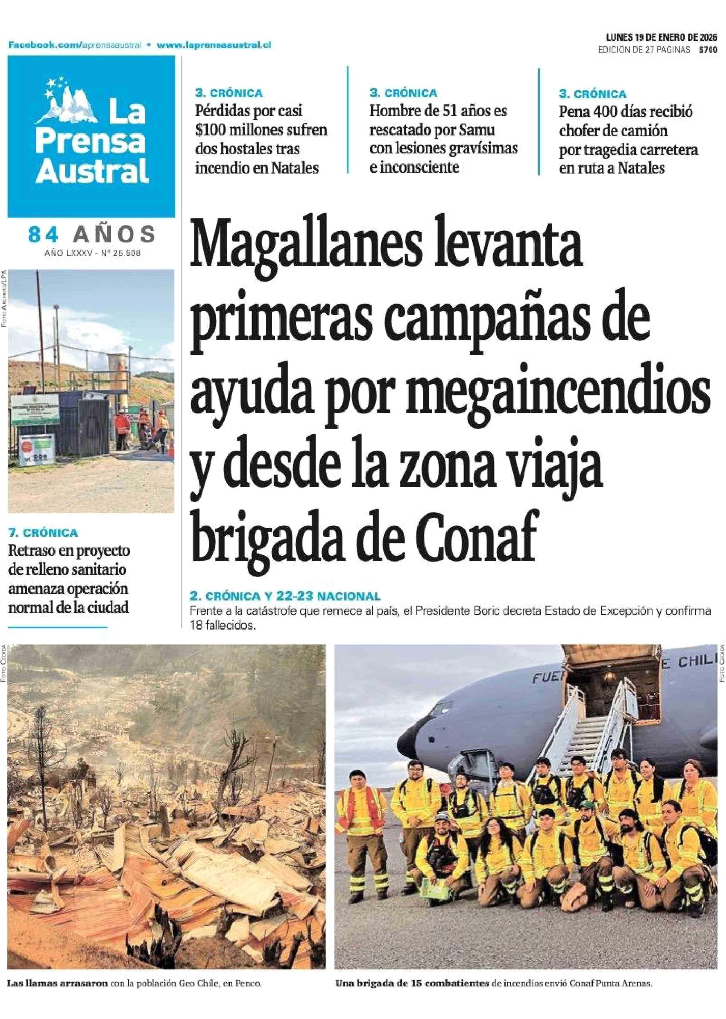 PORTADA LA PRENSA AUSTRAL CHILE 19-01-2026 La Prensa Austral |
