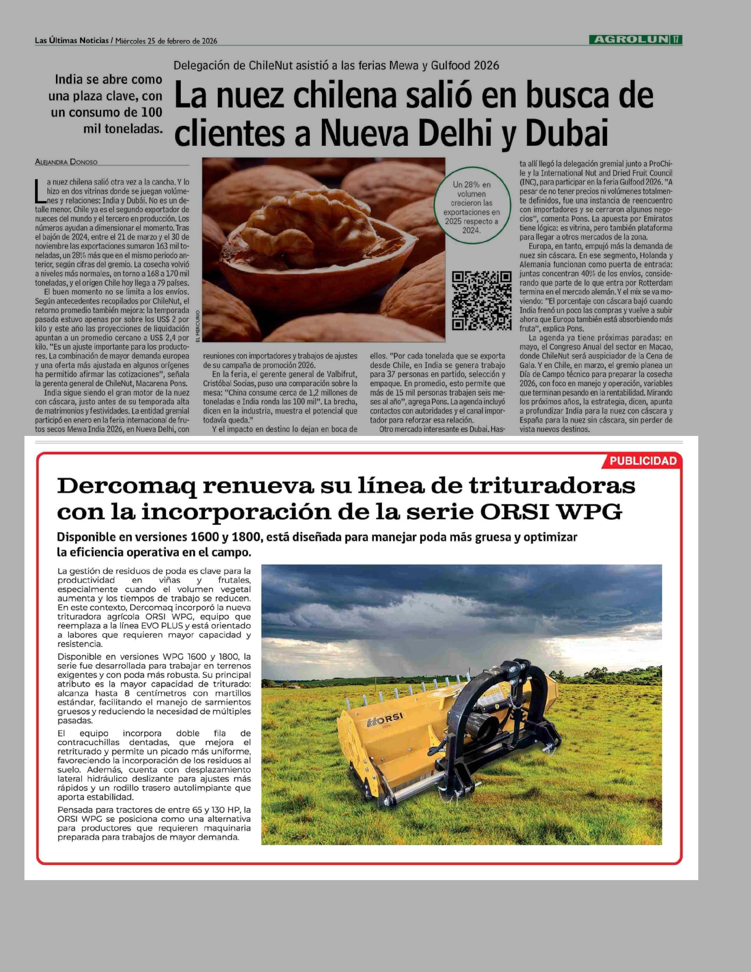 Dercomaq renueva su línea de trituradoras con la incorporación de la serie ORSI WPG 25-02-2026 Las Últimas Noticias |