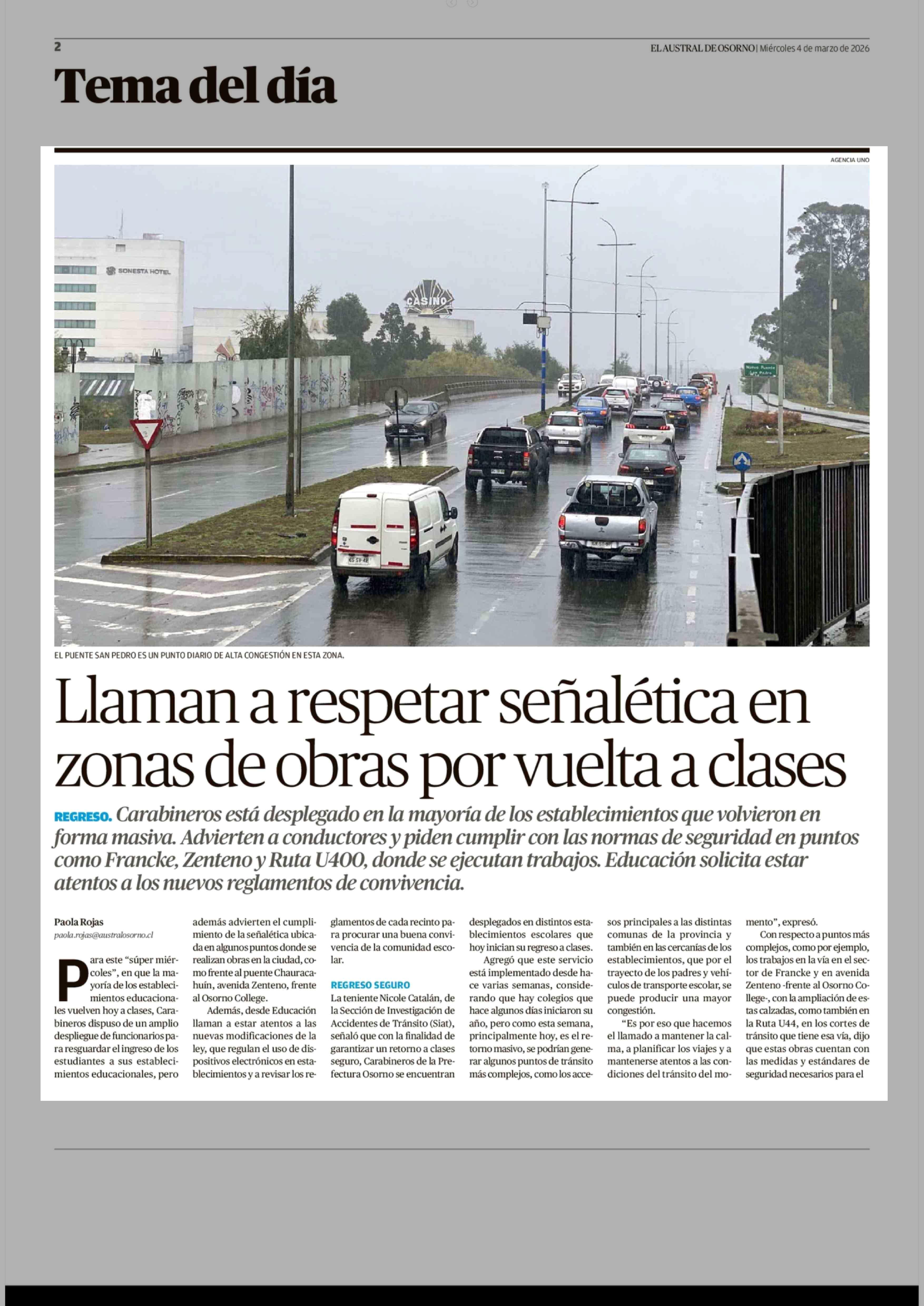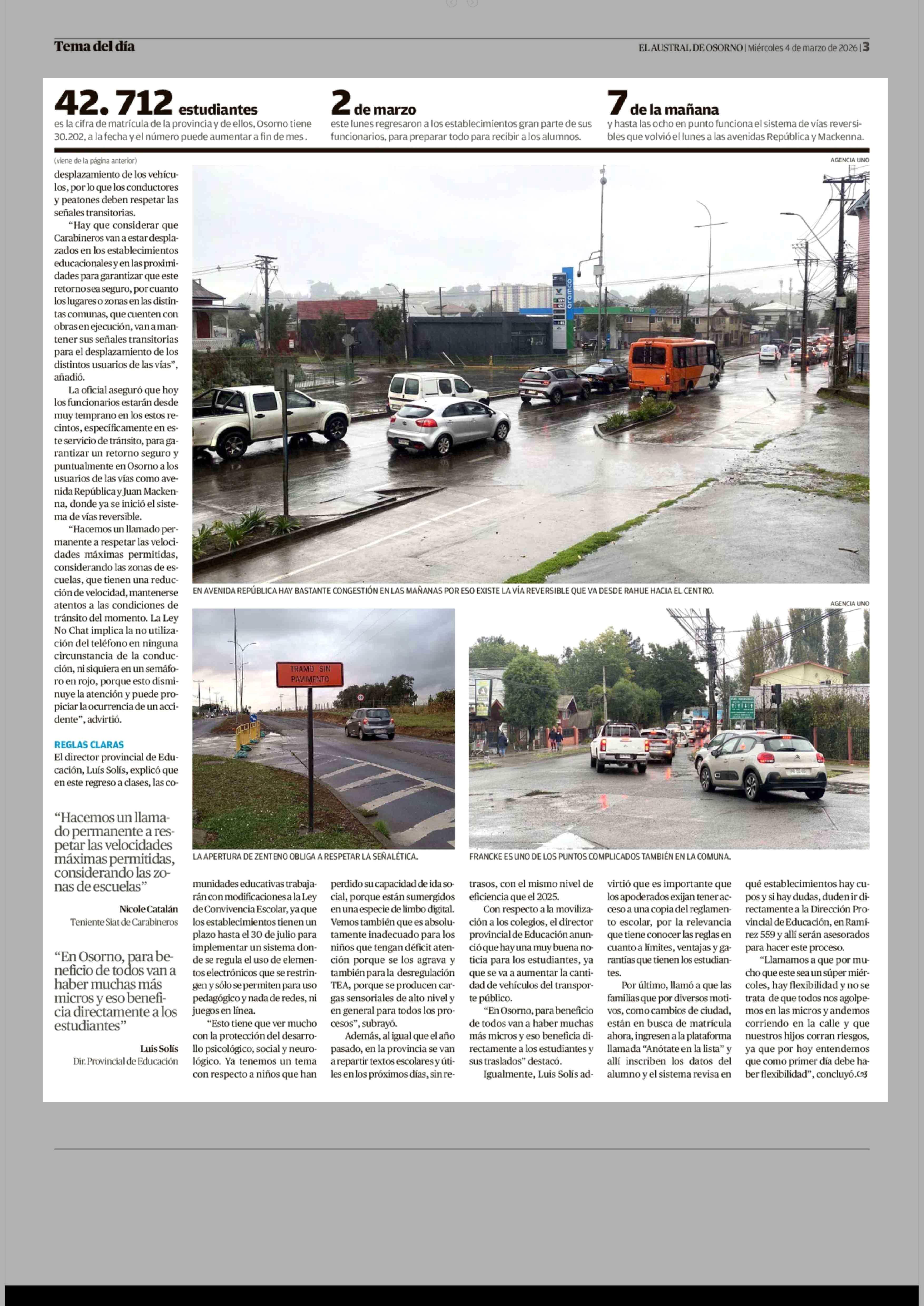 Llaman a respetar señalética en zonas de obras por vuelta a clases 04-03-2026 El Austral de Osorno |