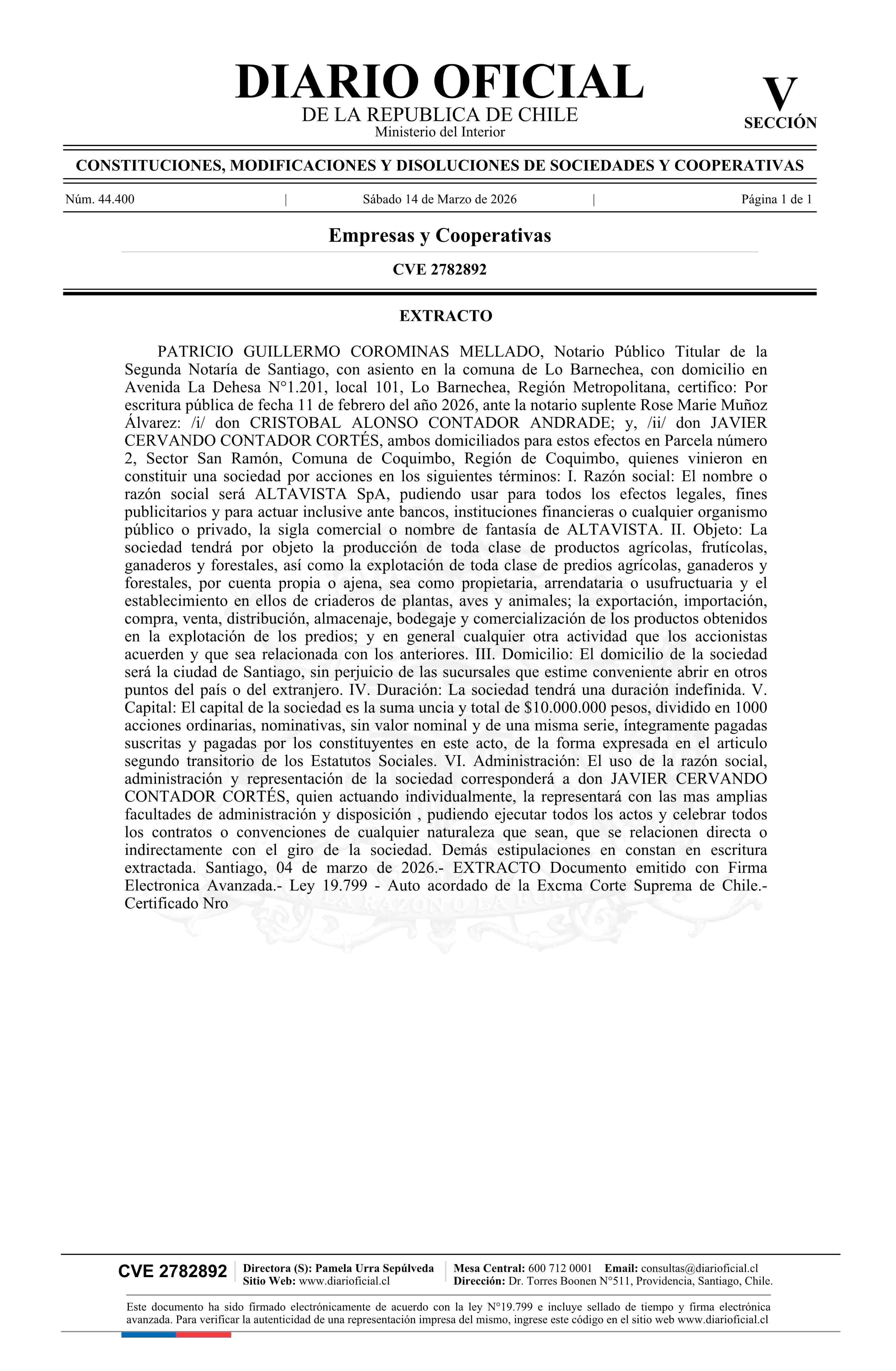 Título: Altavista SpA