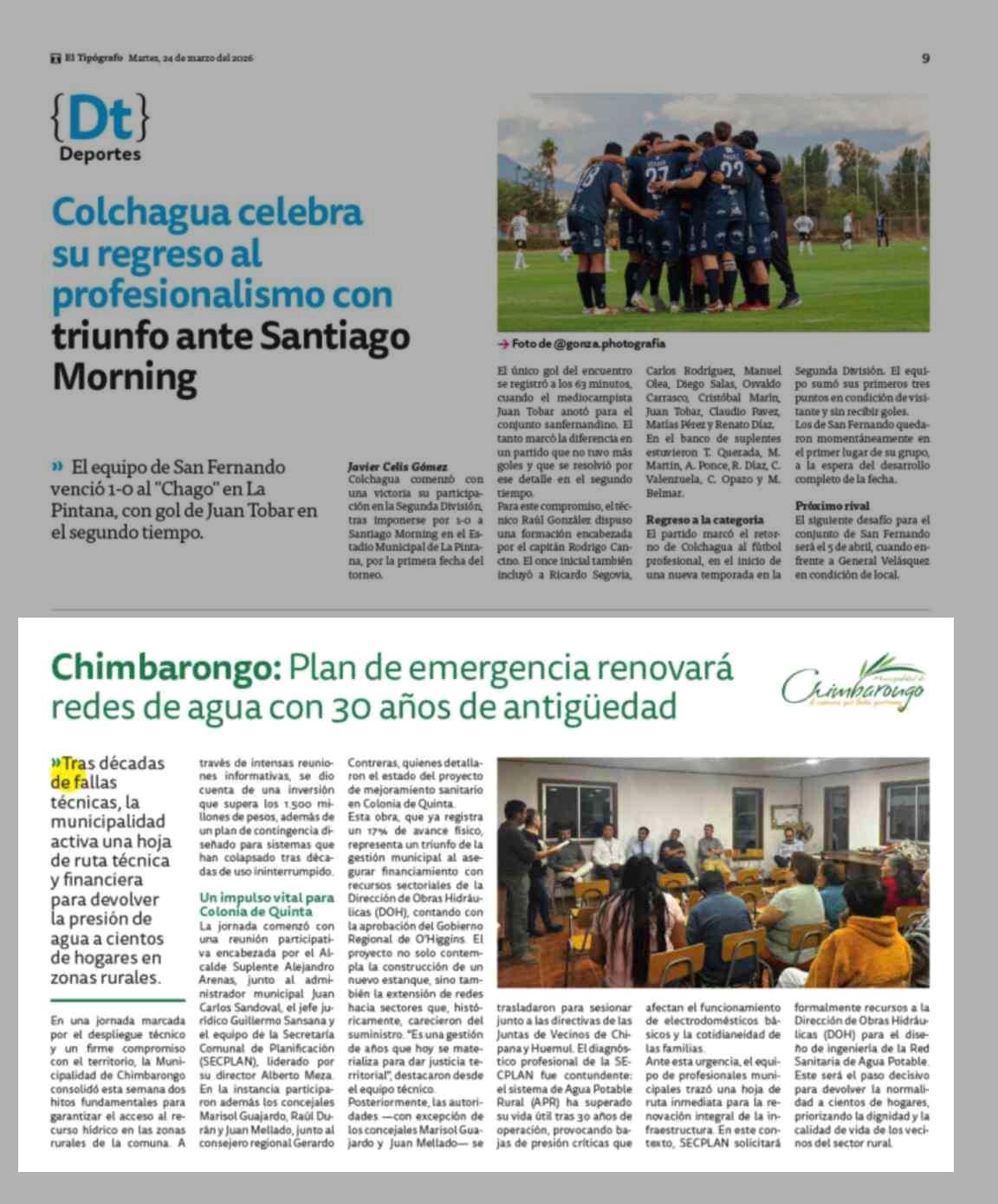 Título: Chimbarongo: Plan de emergencia renovará redes de agua con 30 años de antigüedad