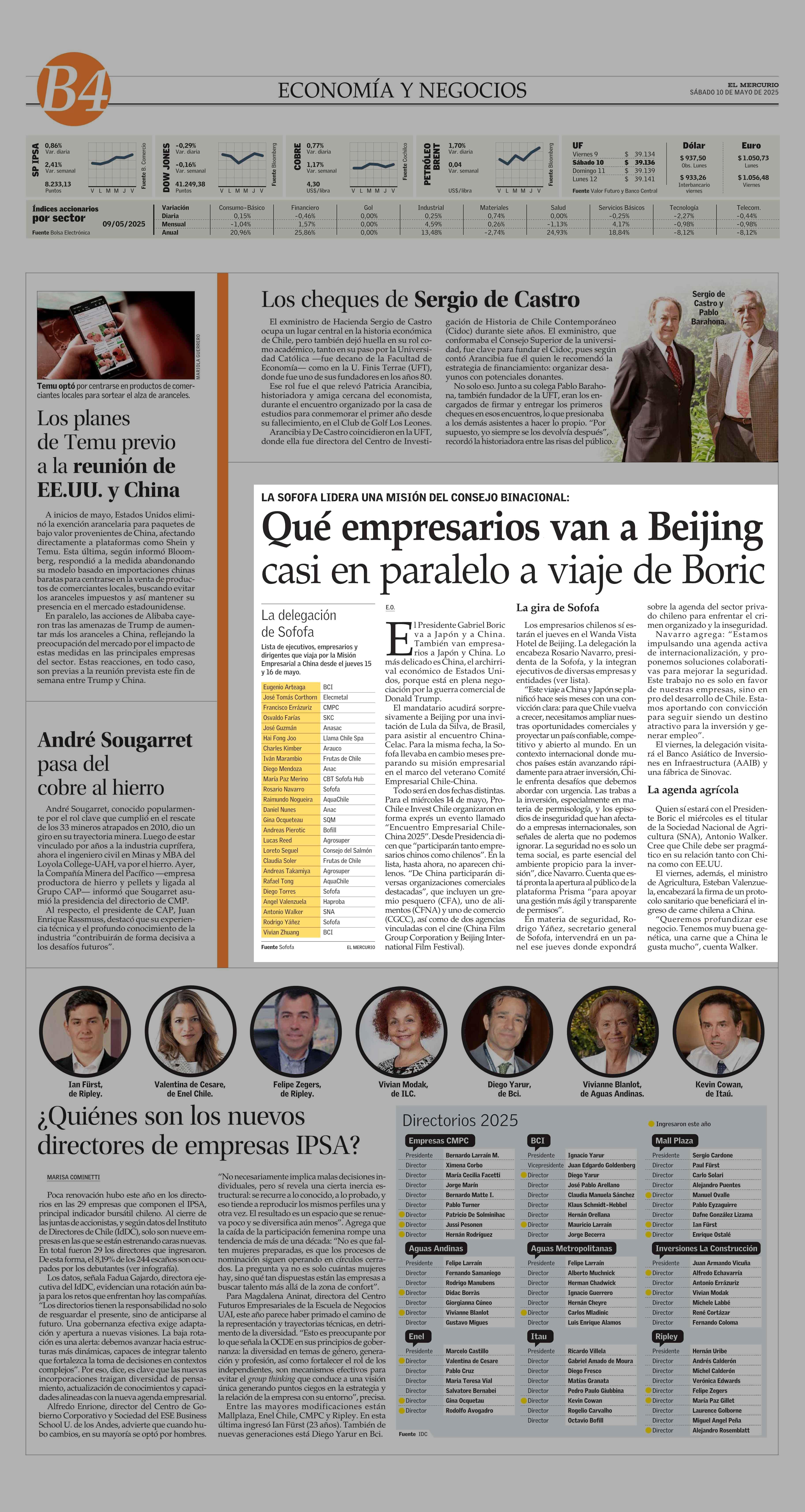 Qué empresarios van a Beijing casi en paralelo a viaje de Boric 10-05-2025 El Mercurio |