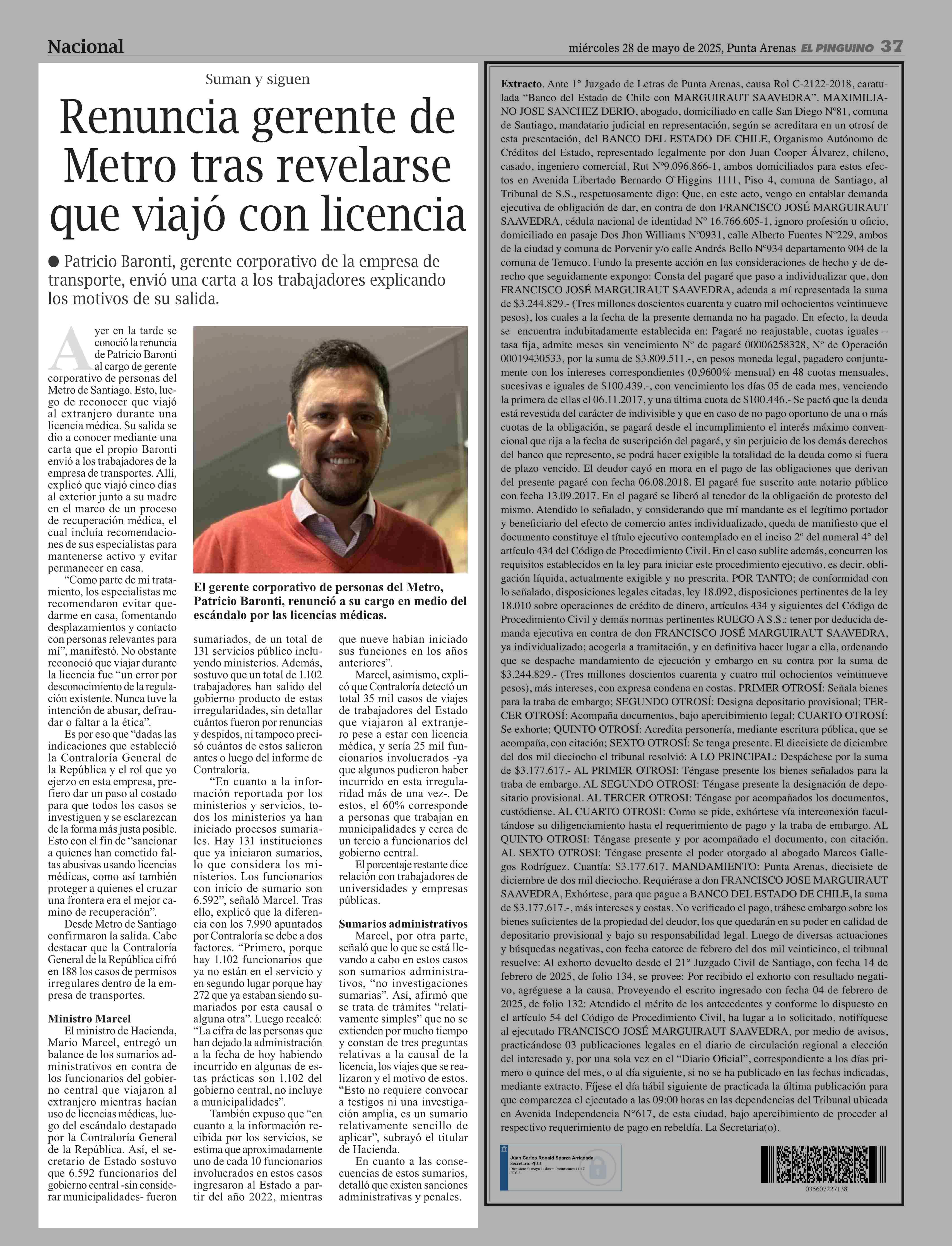 Renuncia gerente de Metro tras revelarse que viajó con licencia 28-05-2025 El Pingüino |
