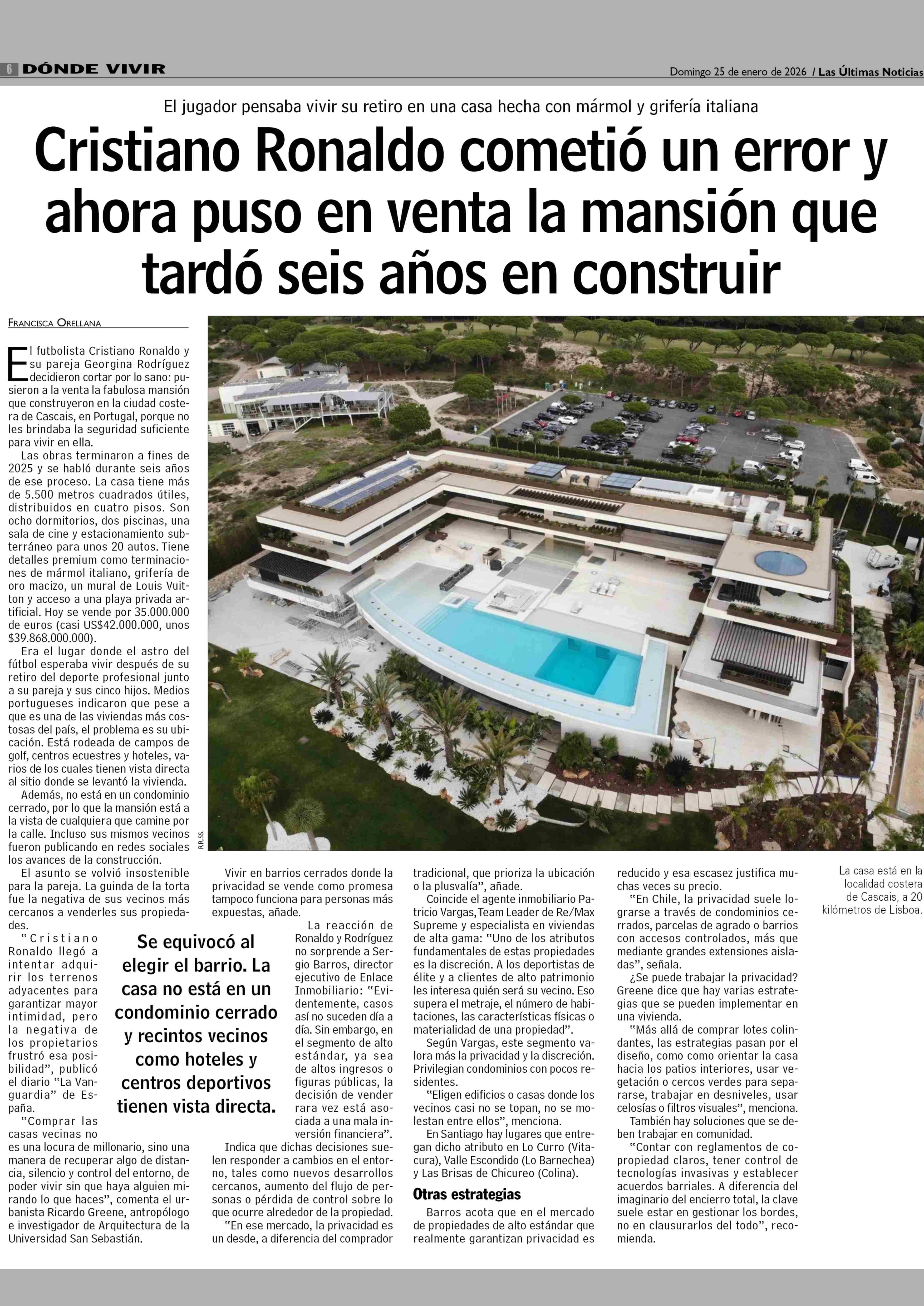 Título: Cristiano Ronaldo cometió un error y ahora puso en venta la mansión que tardó seis años en construir