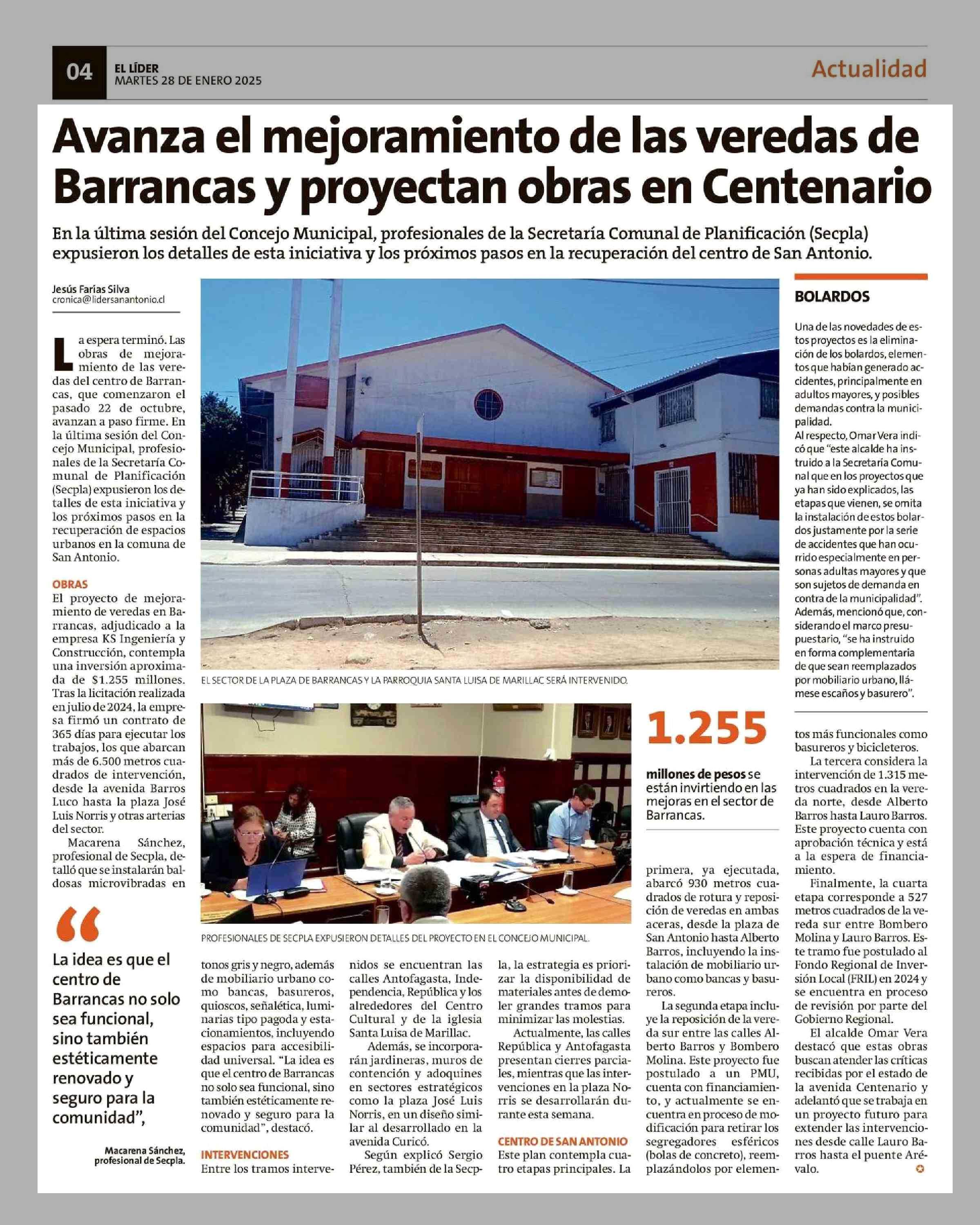 Avanza el mejoramiento de las veredas de Barrancas y proyectan obras en Centenario 28-01-2025 El Líder |