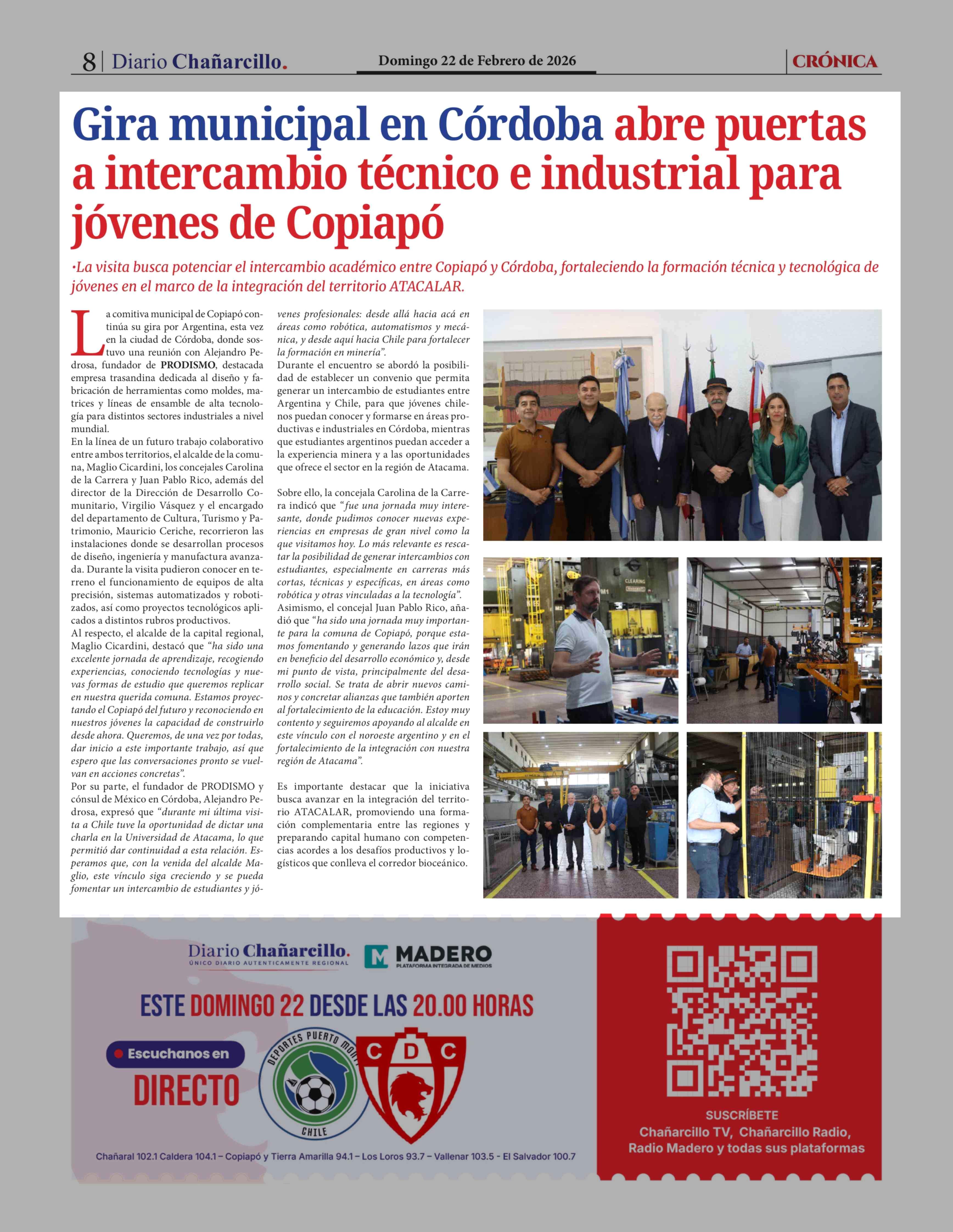 Gira municipal en Córdoba abre puertas a intercambio técnico e industrial para jóvenes de Copiapó 22-02-2026 Diario Chañarcillo |