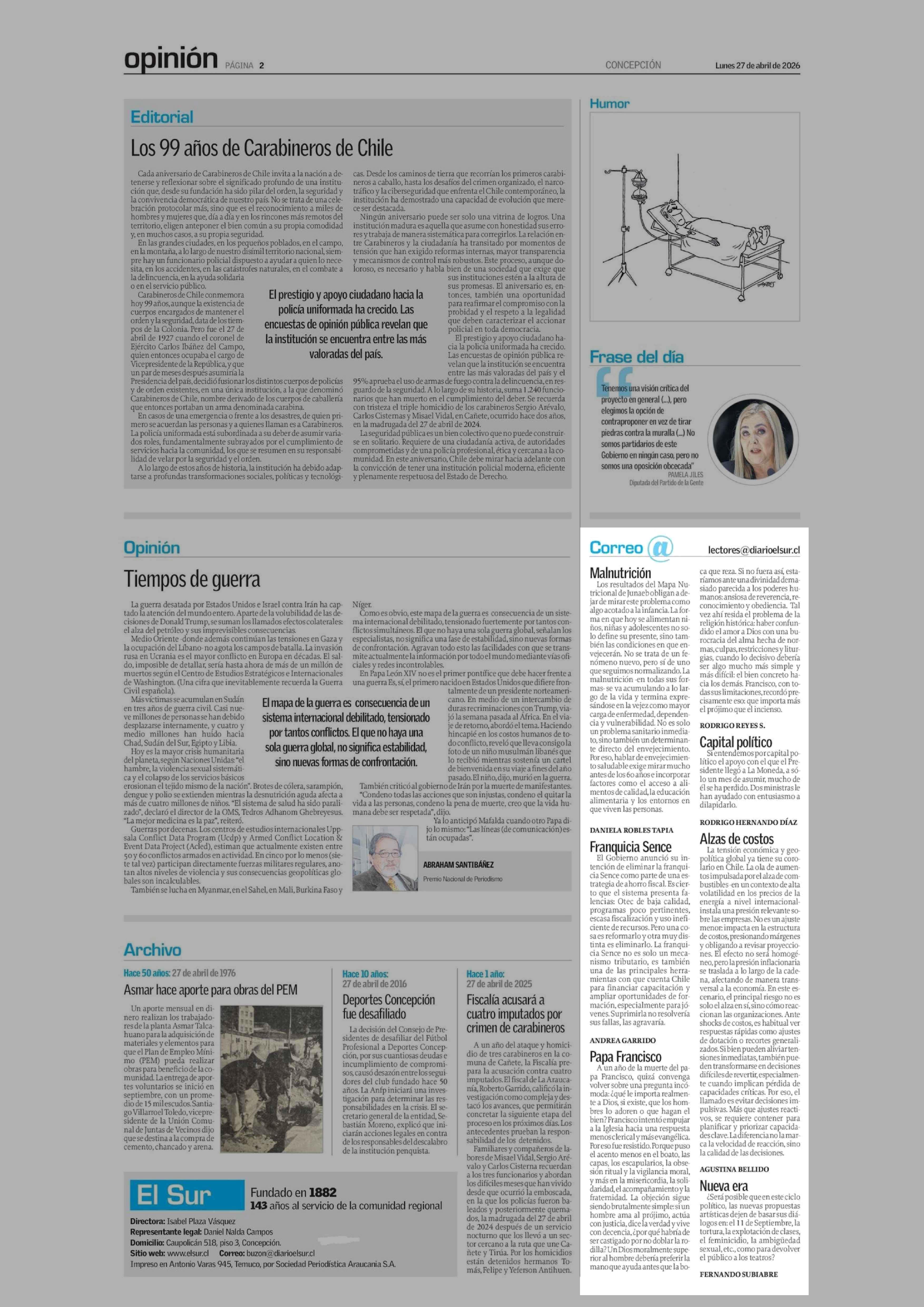 Cartas: Correo 27-04-2026 El Sur |