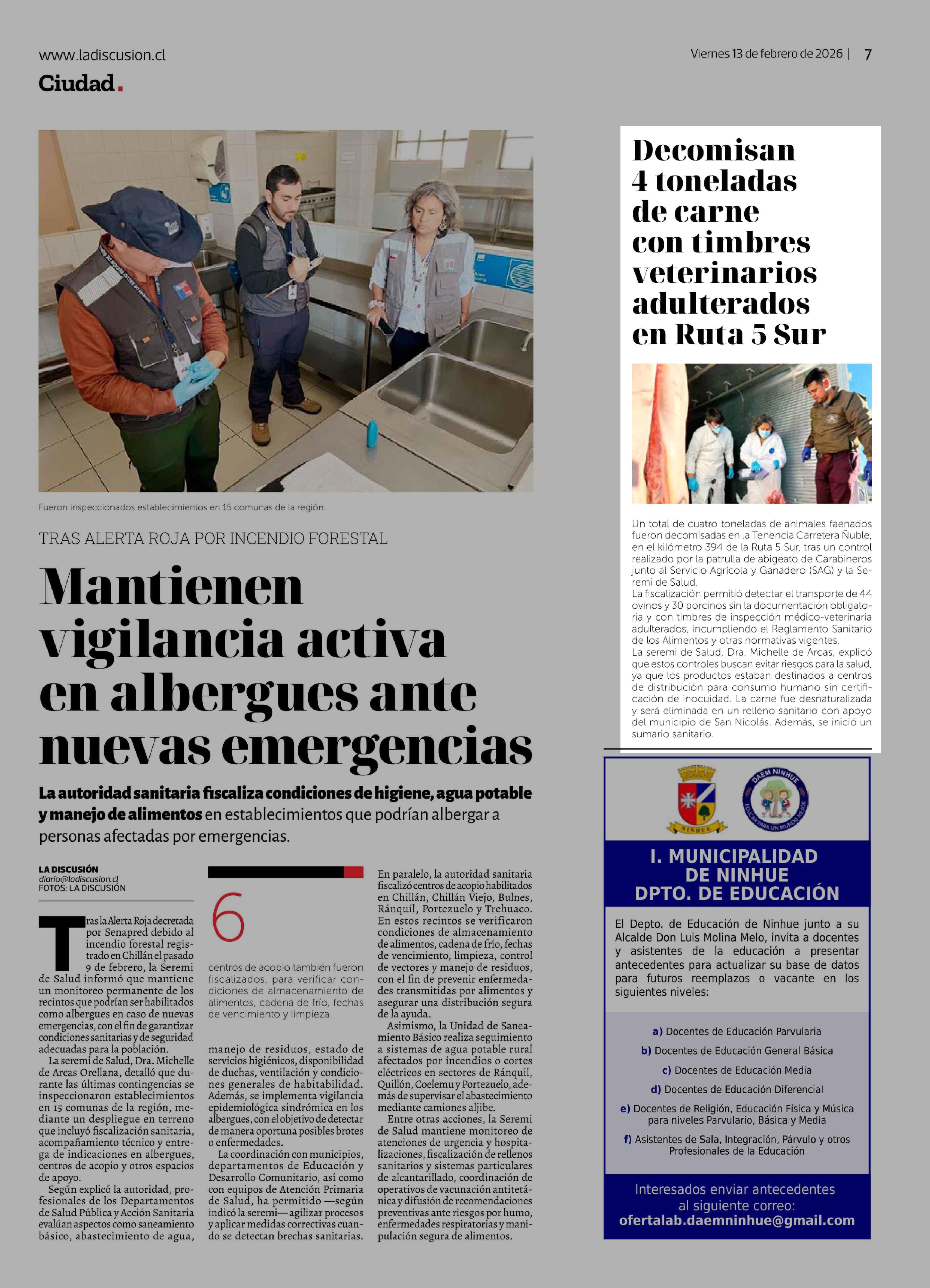 Fecha: 13-02-2026 Sector: Noticia general Región: Región del Ñuble