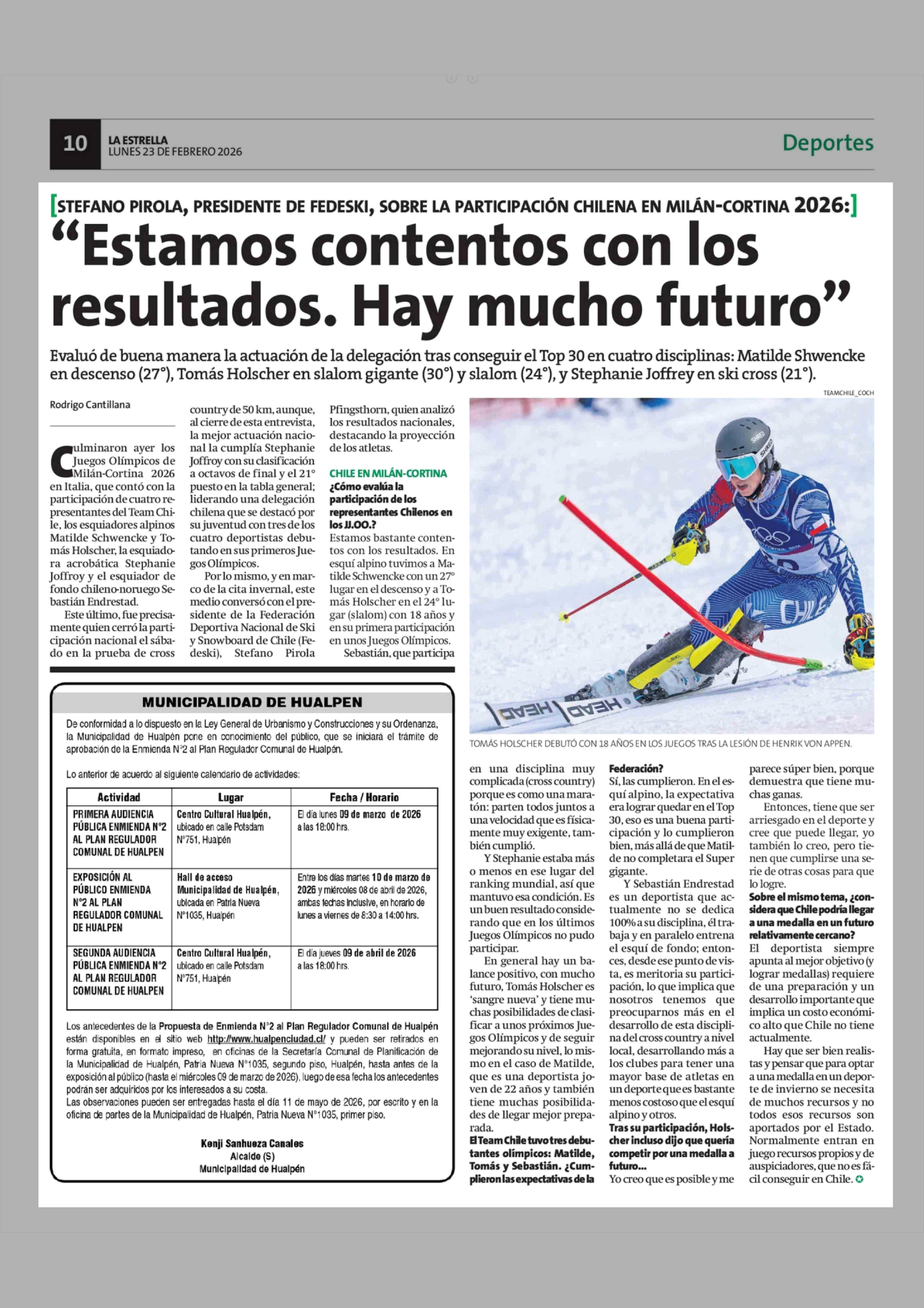 "Estamos contentos con los resultados. Hay mucho futuro" 23-02-2026 La Estrella de Concepción |