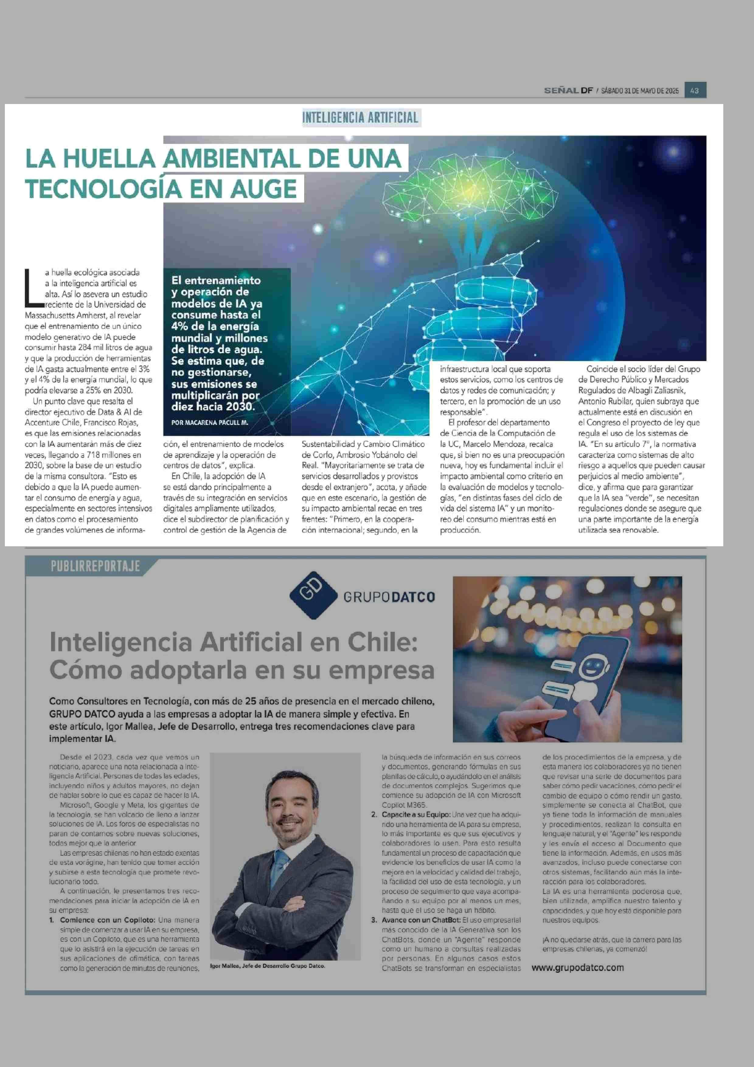 LA HUELLA AMBIENTAL DE UNA TECNOLOGÍA EN AUGE 31-05-2025 Diario Financiero |