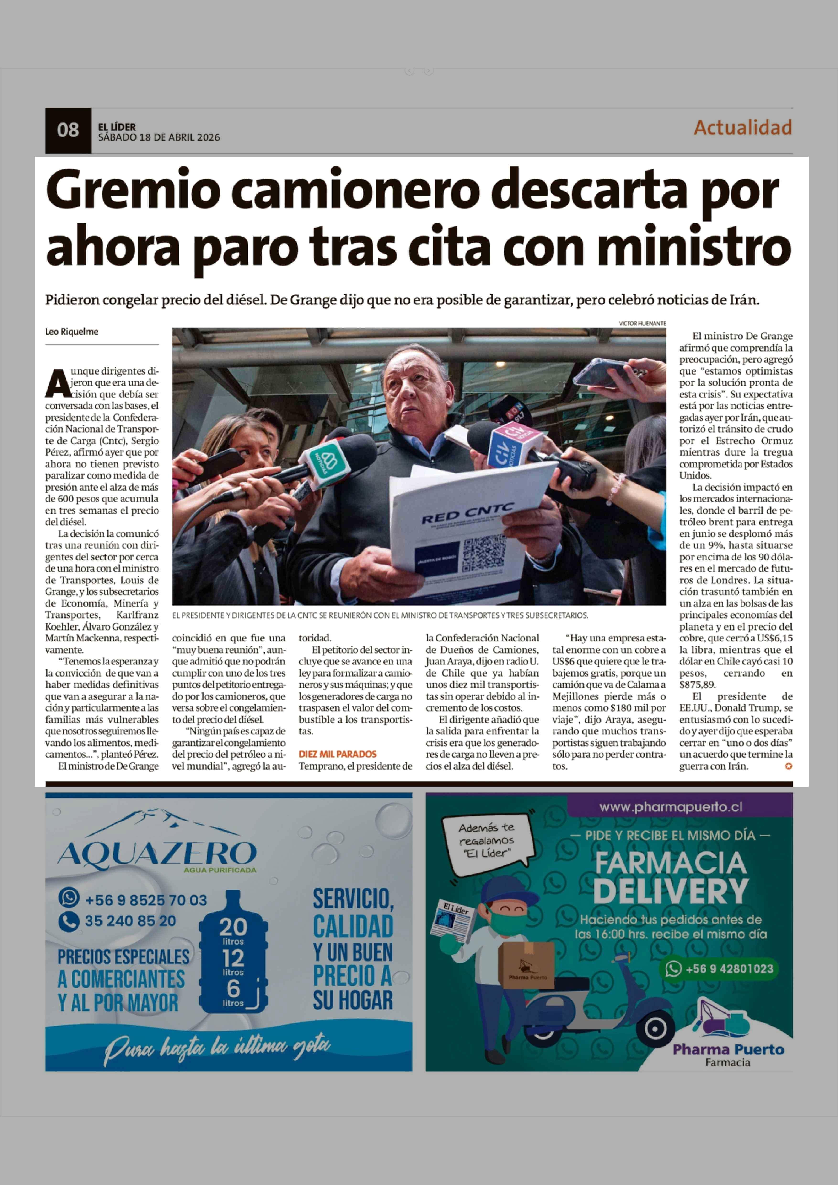 Título: Gremio camionero descarta por ahora paro tras cita con ministro
