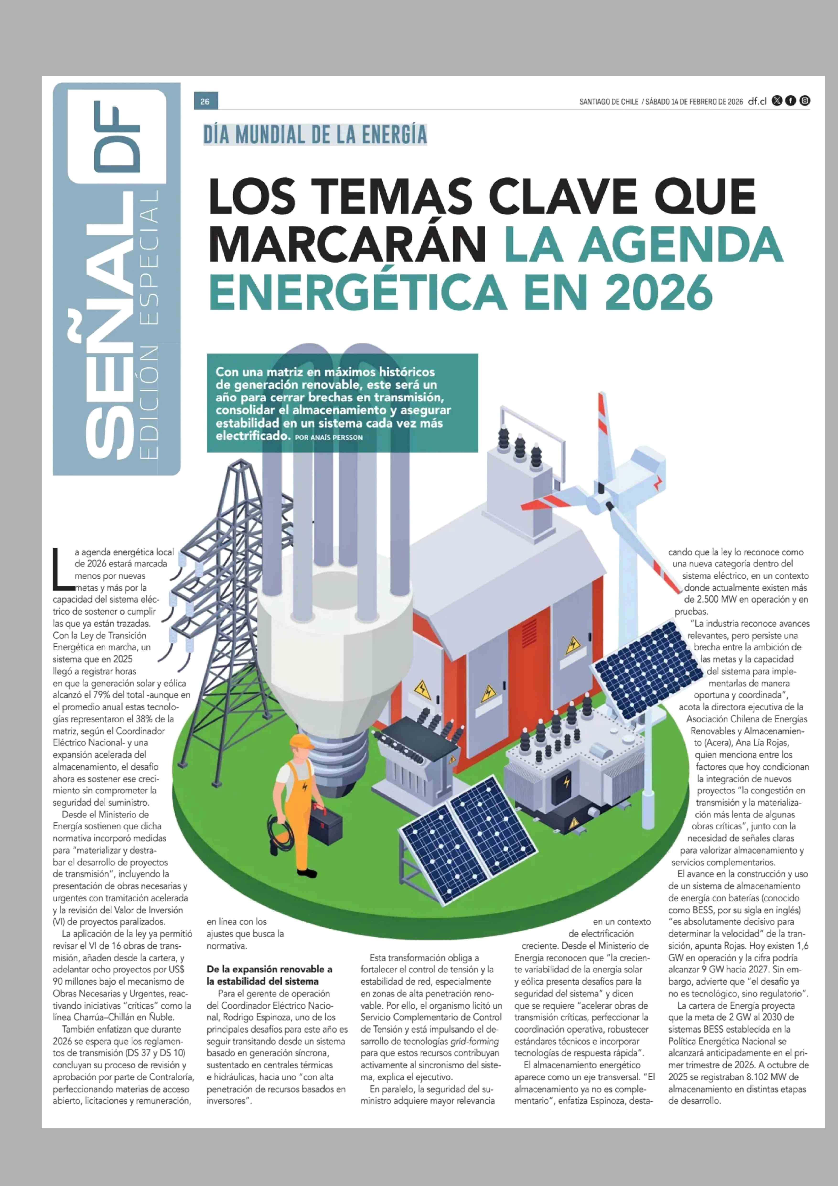 LOS TEMAS CLAVE QUE MARCARÁN LA AGENDA ENERGETICA EN 2026 14-02-2026 Diario Financiero |
