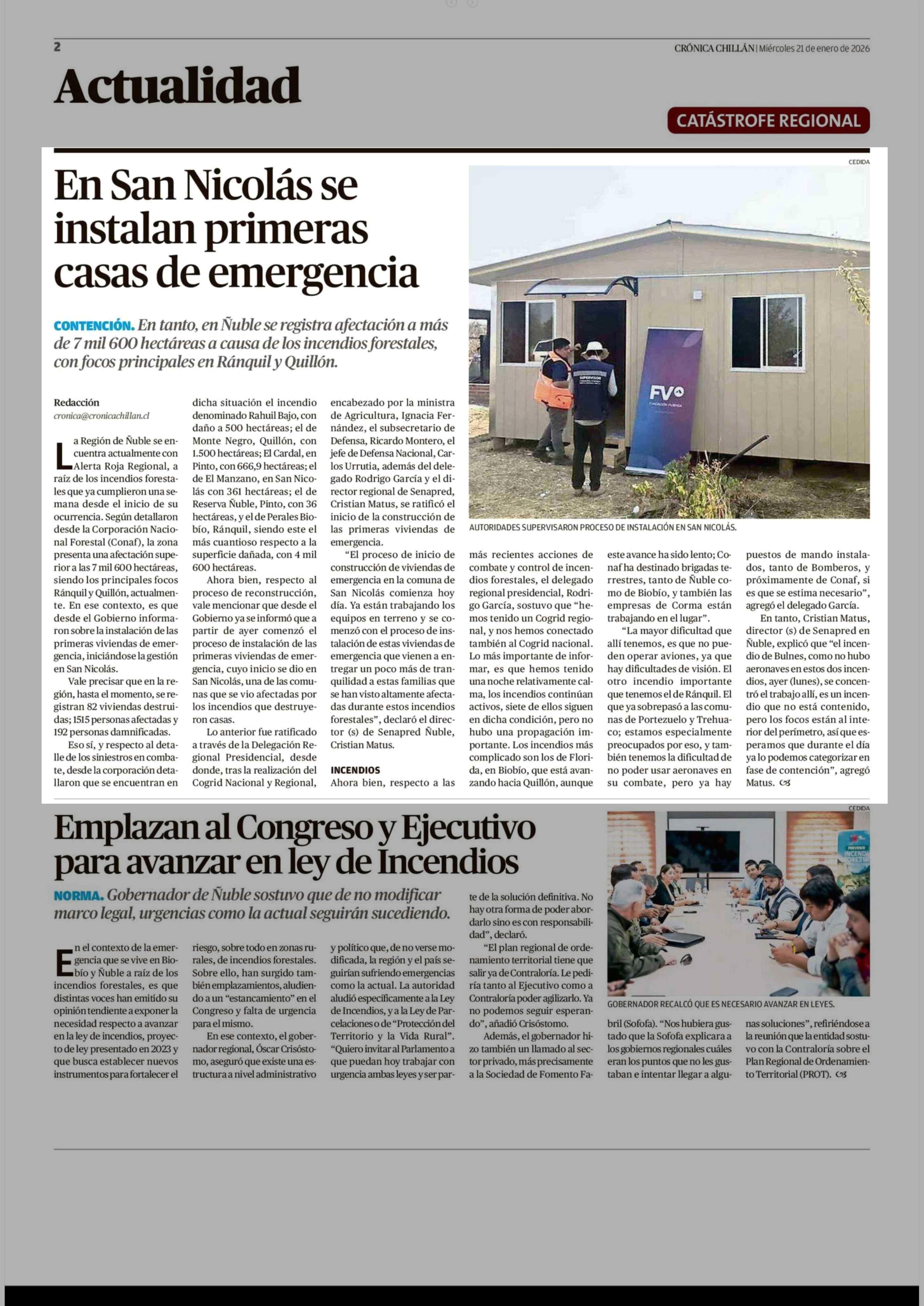 | Fecha: | 21-01-2026 | Sector: | Noticia general | Región: | Región del Ñuble |