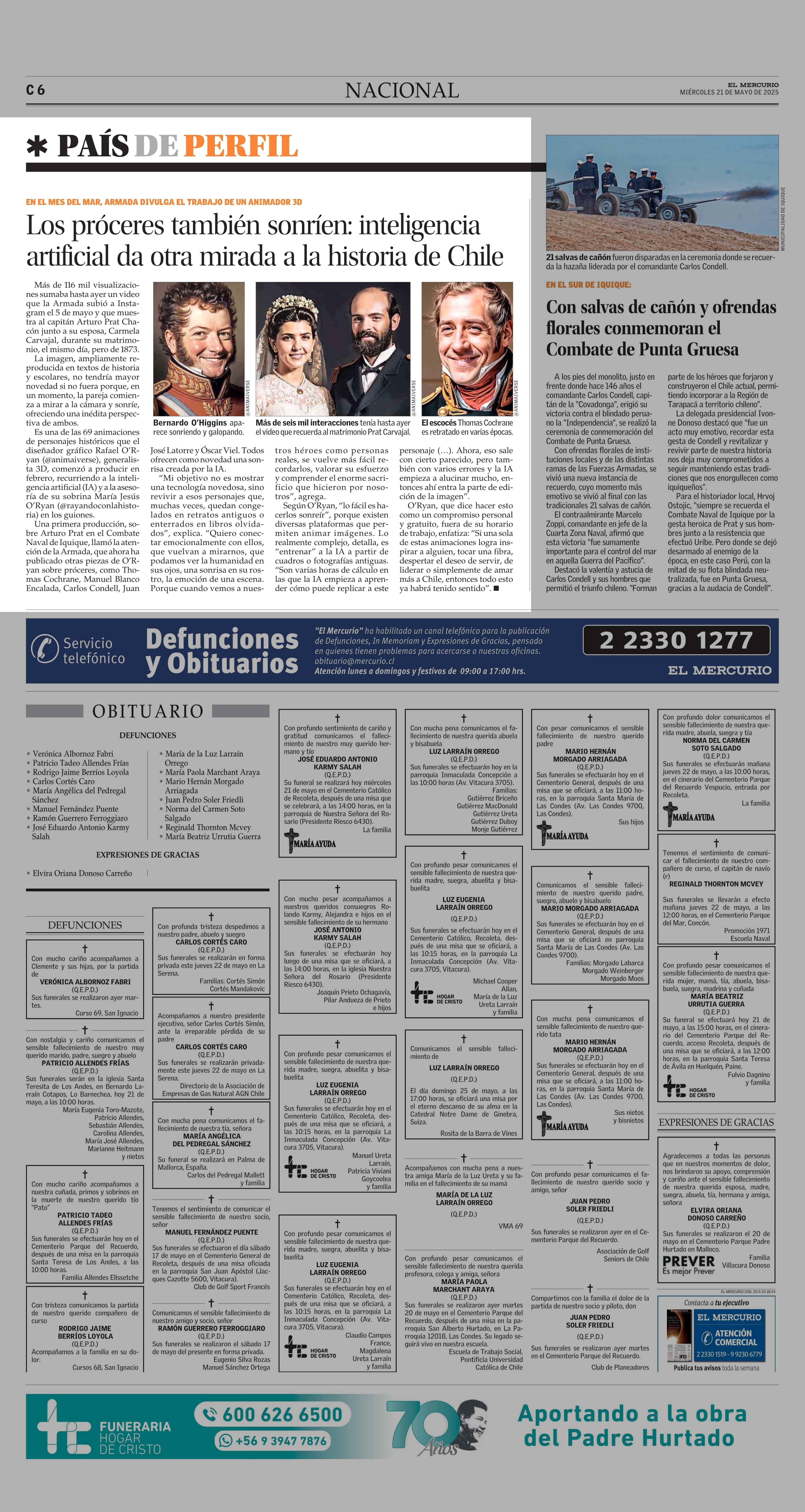 Los próceres también sonríen: inteligencia artificial da otra mirada a la historia de Chile 21-05-2025 El Mercurio |