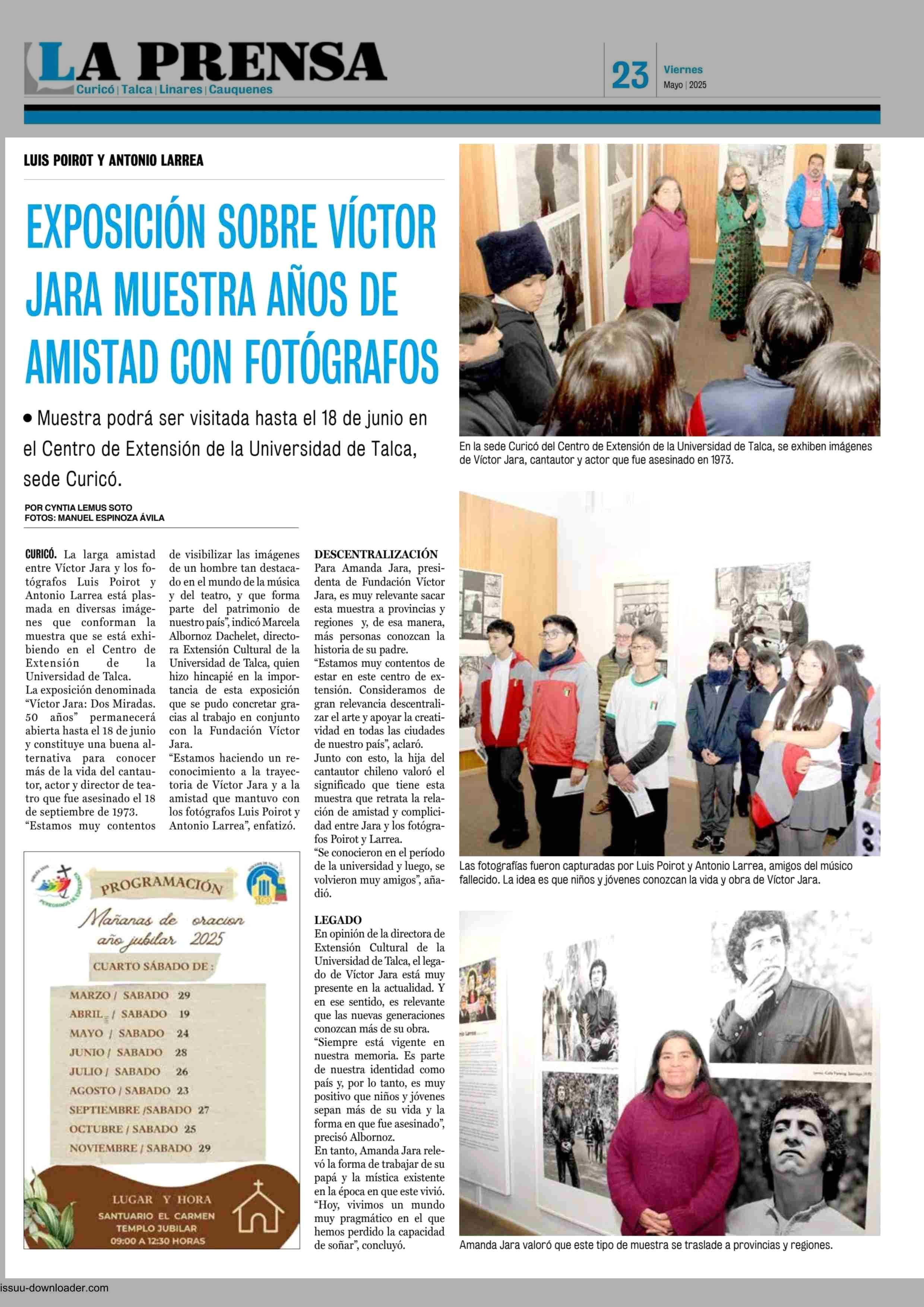 EXPOSICIÓN SOBRE VÍCTOR JARA MUESTRA AÑOS DE AMISTAD CON FOTÓGRAFOS 23-05-2025 La Prensa de Curicó |