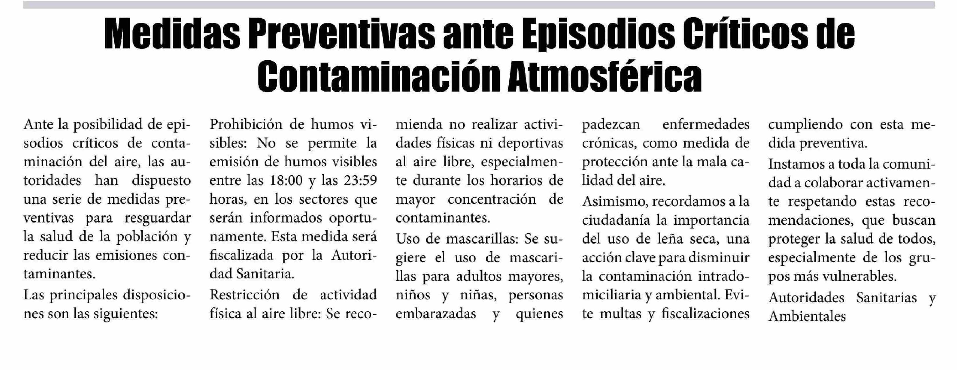 Medida Preventivas ante Episodios Críticos de Contaminación Atmosférica 03-06-2025 El Lector |