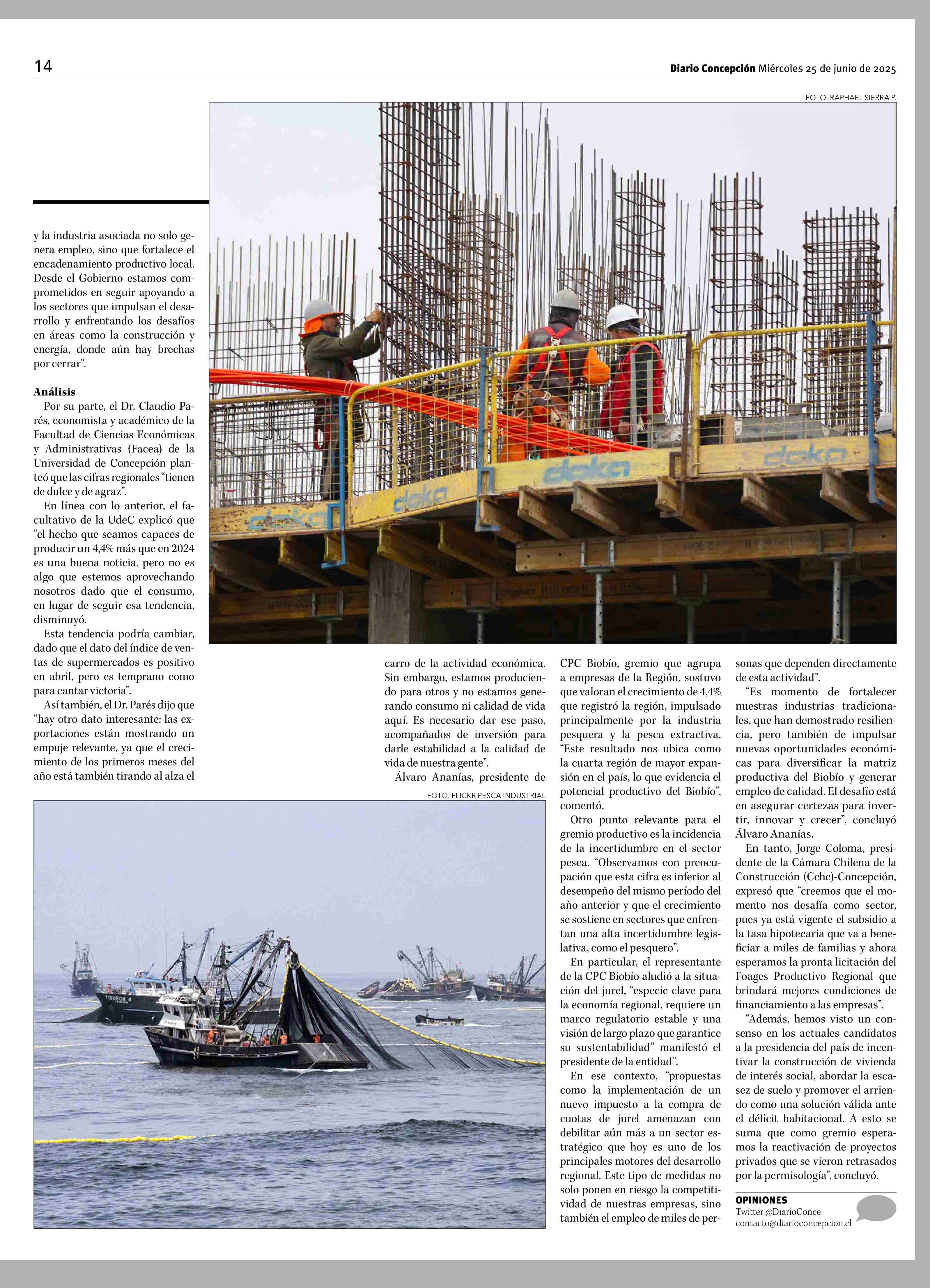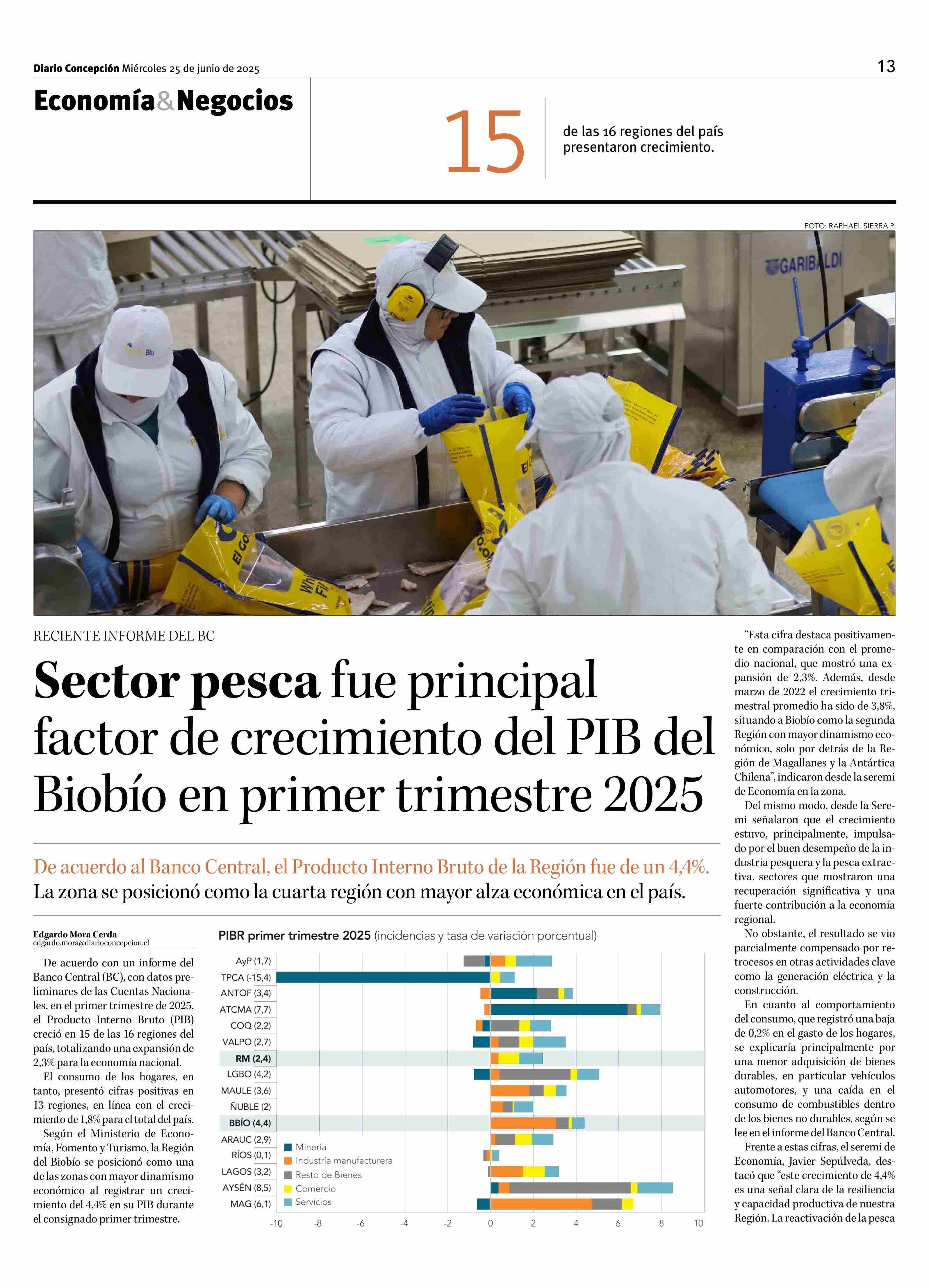 Sector pesca fue principal factor de crecimiento del PIB del Biobío en primer trimestre 2025 25-06-2025 Diario Concepción |
