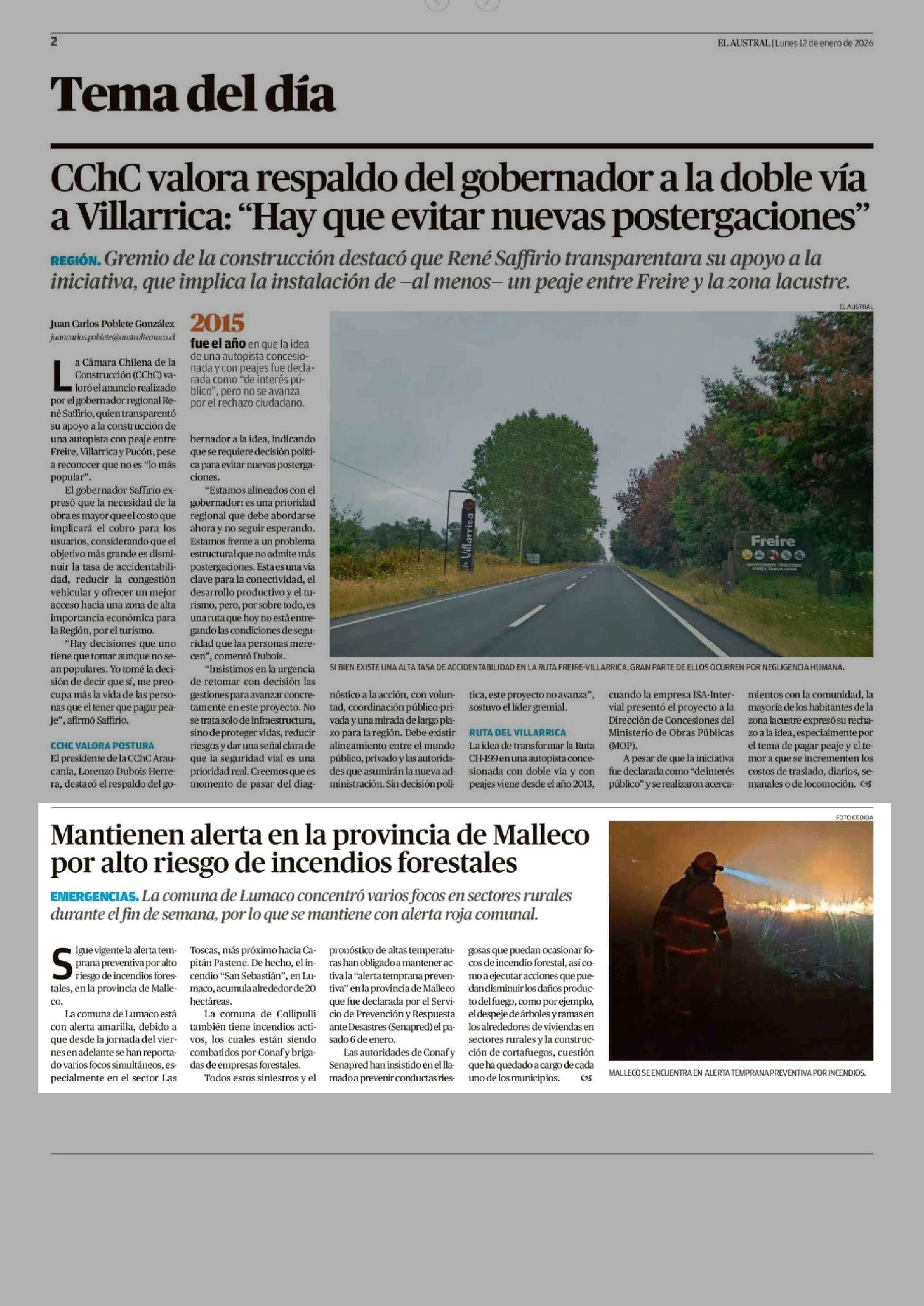 Fecha: 12-01-2026 Sector: Noticia general Región: Región de la Araucanía