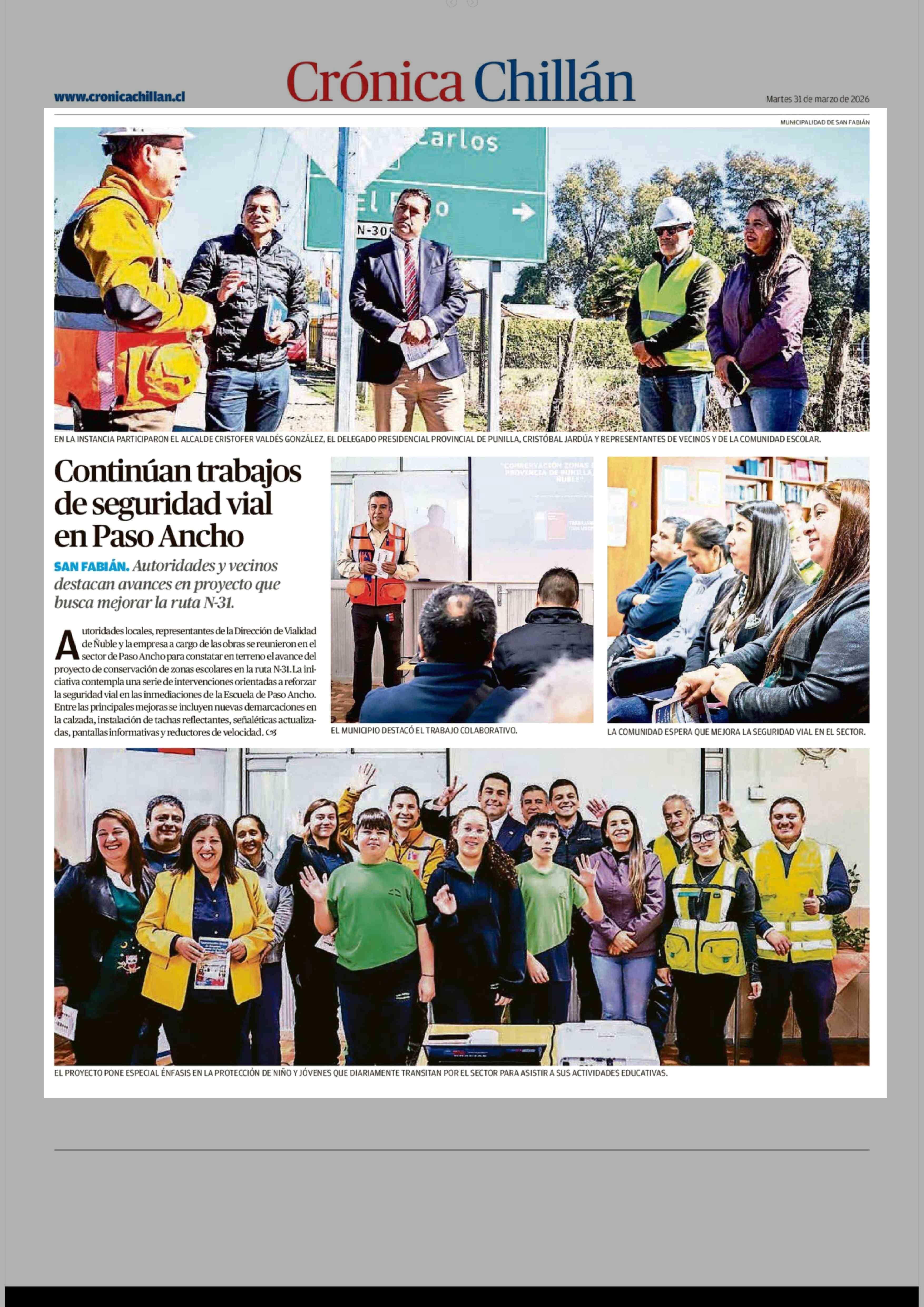 Continúan trabajos de seguridad vial en Paso Ancho 31-03-2026 Crónica de Chillán |
