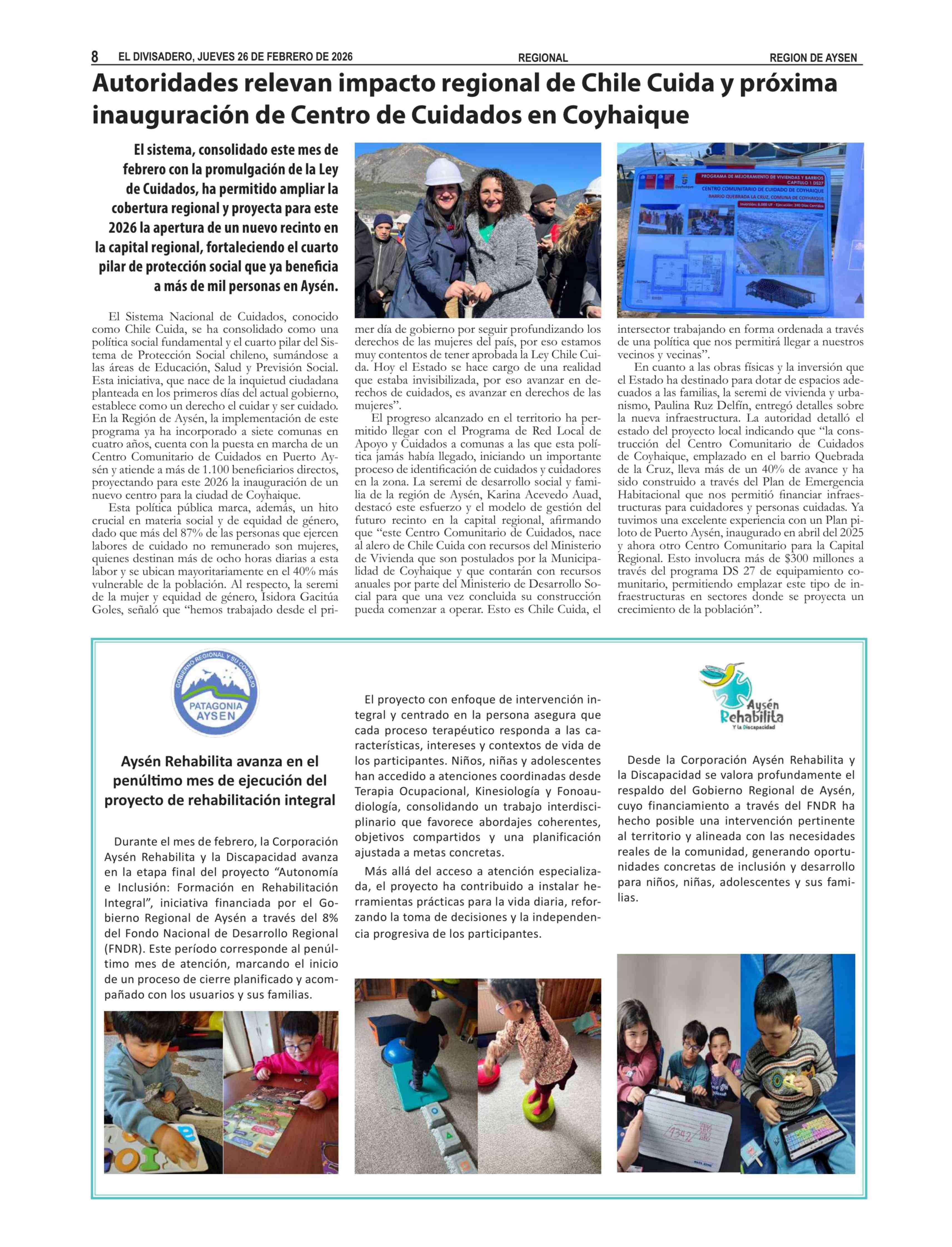 | Fecha: | 26-02-2026 | Sector: | Noticia general | Región: | Región Aysén del General Carlos Ibáñez del Campo |