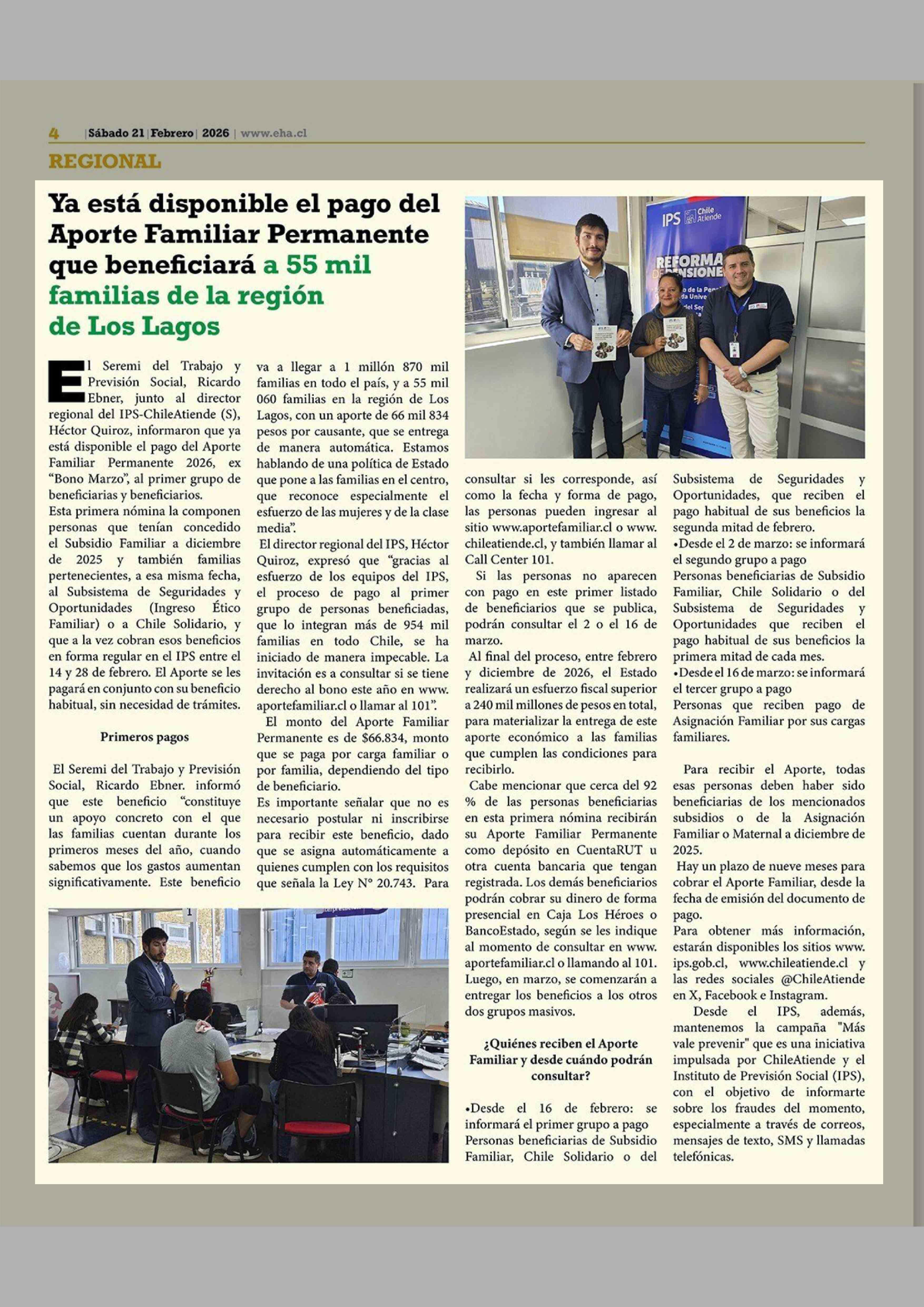 Título: Ya está disponible el pago del Aporte Familiar Permanente que beneficiará a 55 mil familias de la región de Los Lagos