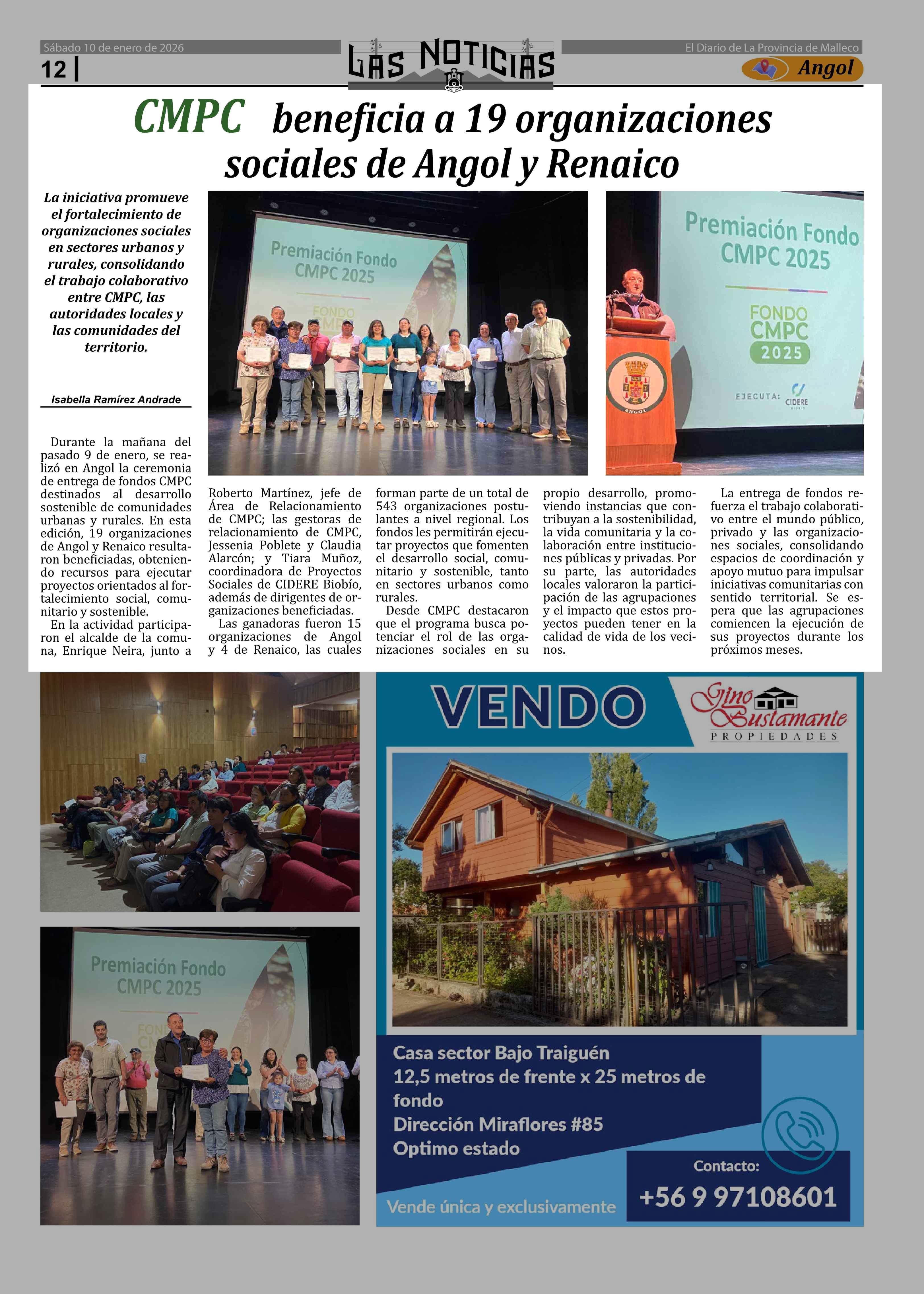 Título: CMPC beneficia a 19 organizaciones sociales de Angol y Renaico