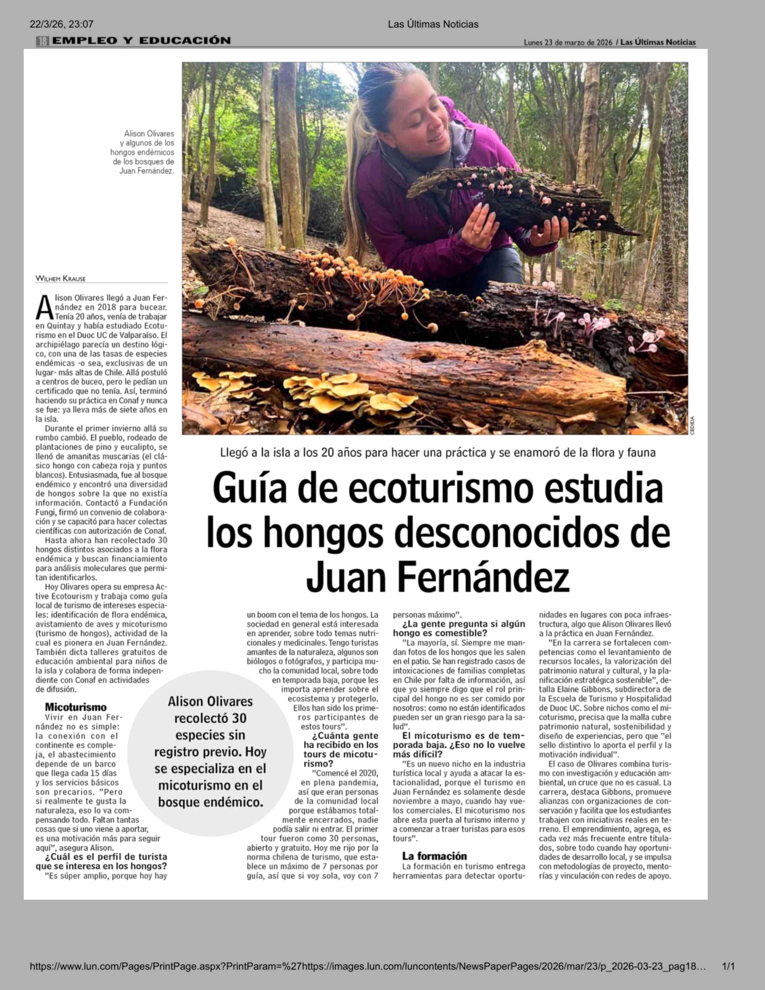 Título: Guía de ecoturismo estudia los hongos desconocidos de Juan Fernandez