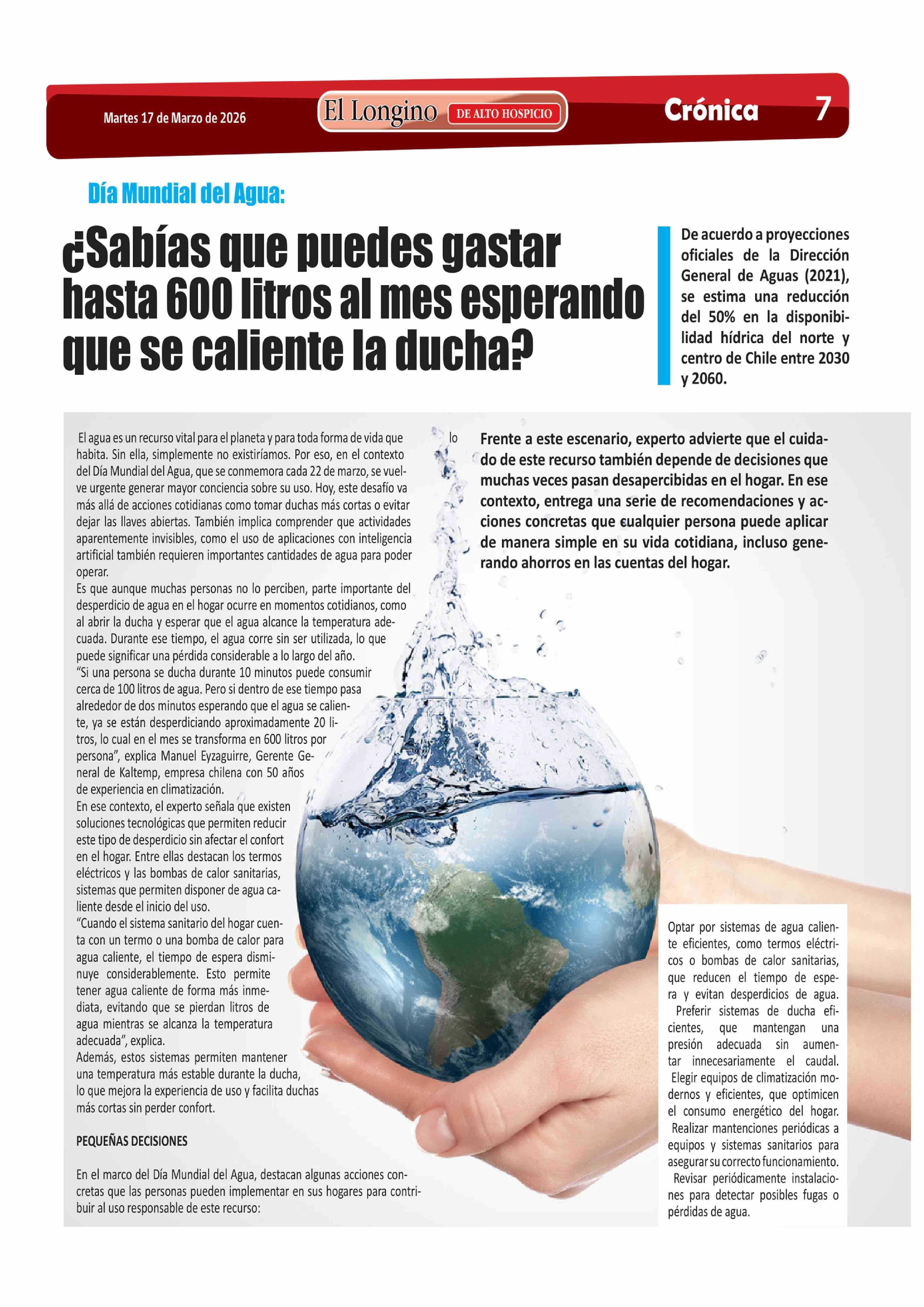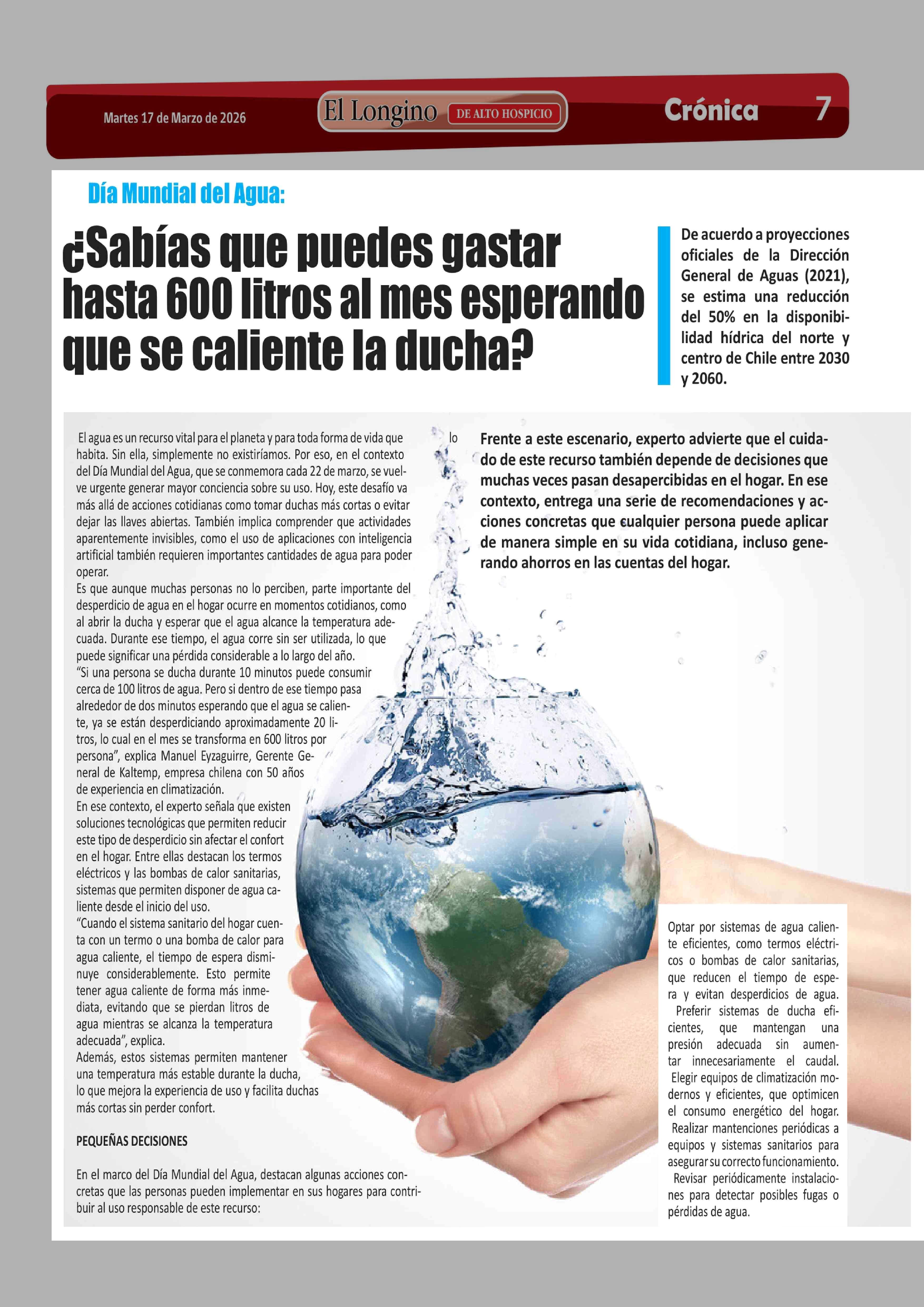 ¿Sabías que puedes gastar hasta 600 litros al mes esperando que se caliente la ducha? 17-03-2026 El Longino |