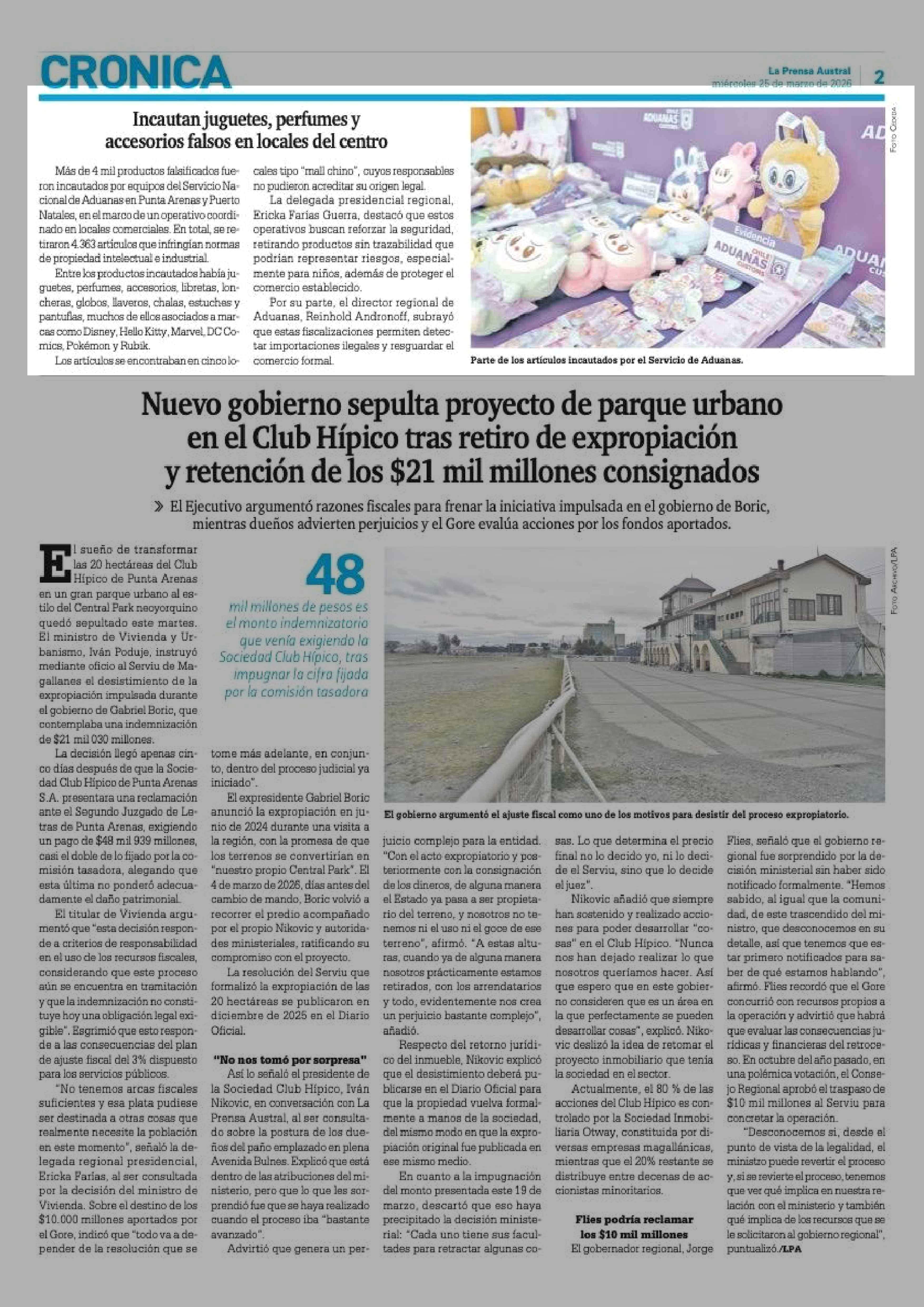 | Fecha: | 25-03-2026 | Sector: | Noticia general | Región: | Región de Magallanes y de la Antártica Chilena |